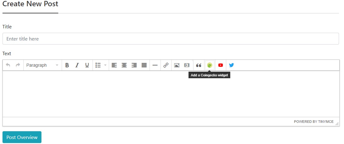 It has many different tools that you would find in almost all blogging websites but also has an option to add a Coingecko widget to your blog. This would be great for talking about a cryptocurrency and being able to show its price very easily without having to use a screenshot or just plain text.