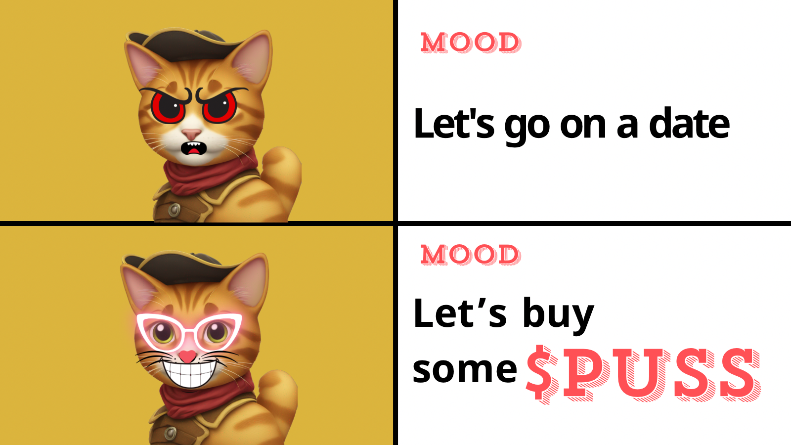 You could also create a story about Puss in the world of meme coins.