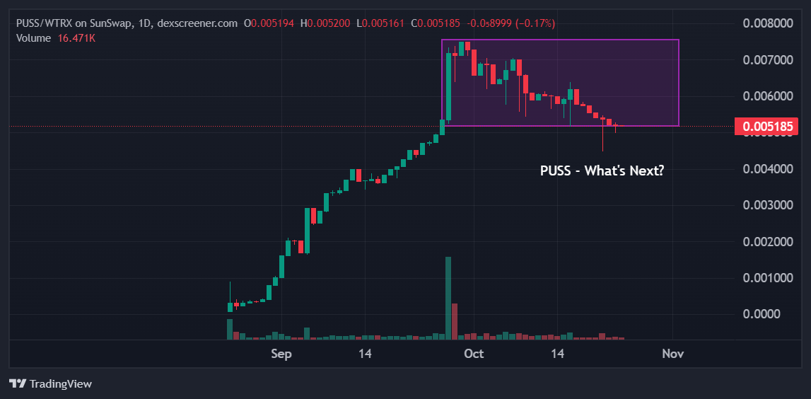 Hello everyone, today, let us discuss and analyze the progress of $PUSS Token Analysis. From our previous analysis, we can see a little bit of retracement from PUSS over the past fifteen days now, and I guess this is the right time to make the next analysis of what's next for $PUSS from this range.
