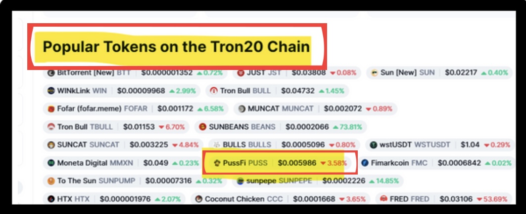 PUSSFi movement is gaining massive traction as we continue to climb the ranks! 🌐🔥 From the Tron-20 chain to the CoinMarketCap charts, we’re on the rise.