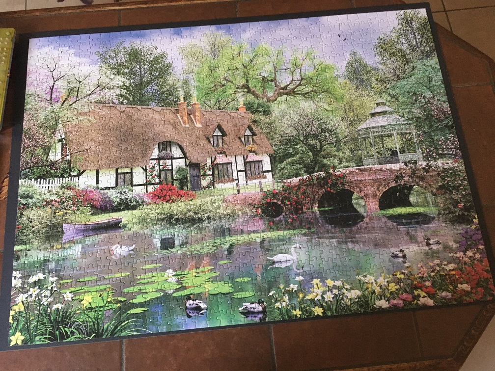 J'ai donc repris ma planche, que je peux remettre dans son étui où le puzzle tient par pression. Je dois toutefois avouer que je préfère simplement déplacer ma planche et la déposer sur une table ou un lit, le temps nécessaire et la remettre ensuite sur la table où je pourrai le continuer, plutôt que de le ranger dans son étui.