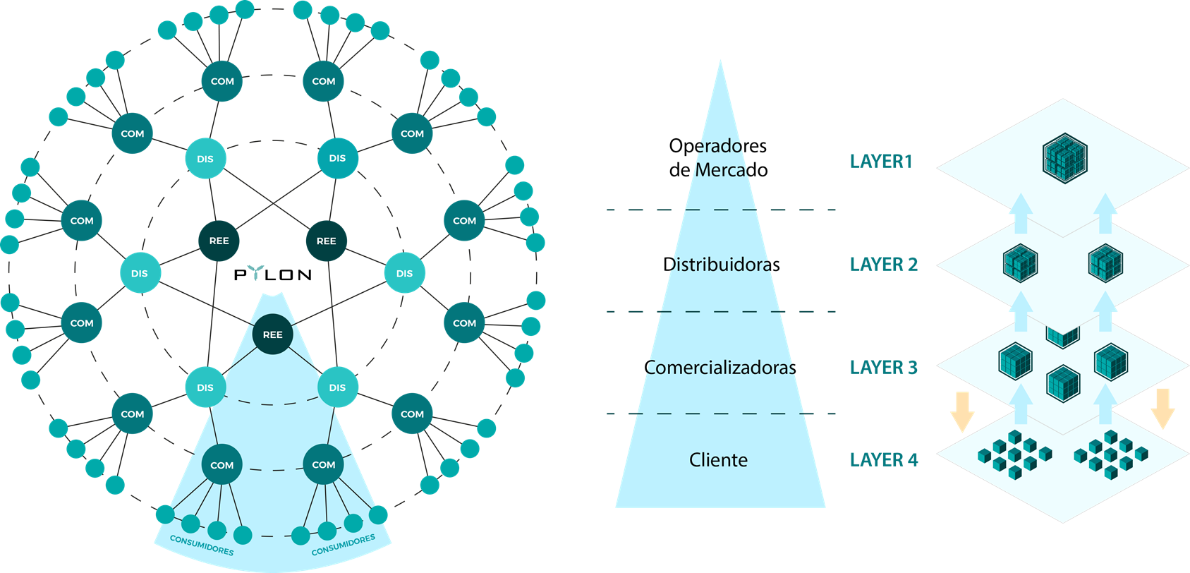 Figure 1 Structure of the Pylon Network – Layers of information among the actors in the energy market.