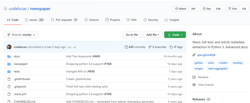 - newspaper library를 이용해서 간단하게 웹페이지 내용을 가져올 수 있습니다.