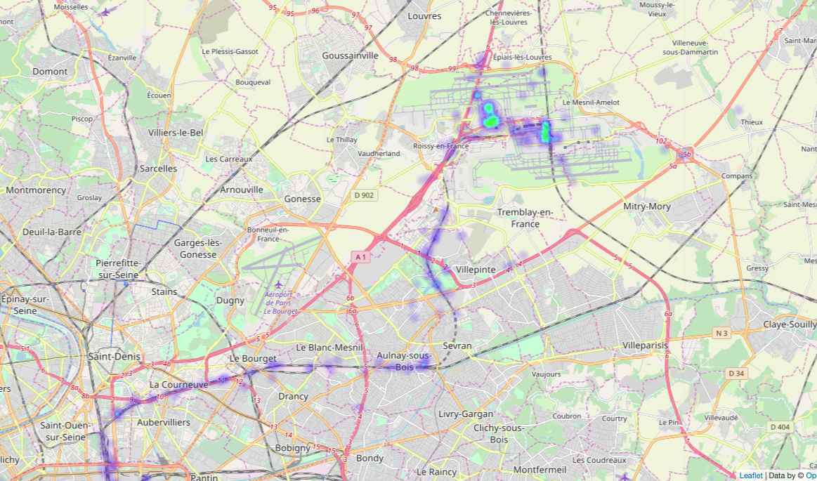 This screenshot of the heatmap shows my activity at Charles de Gaulle airport in Paris and the train in to town.