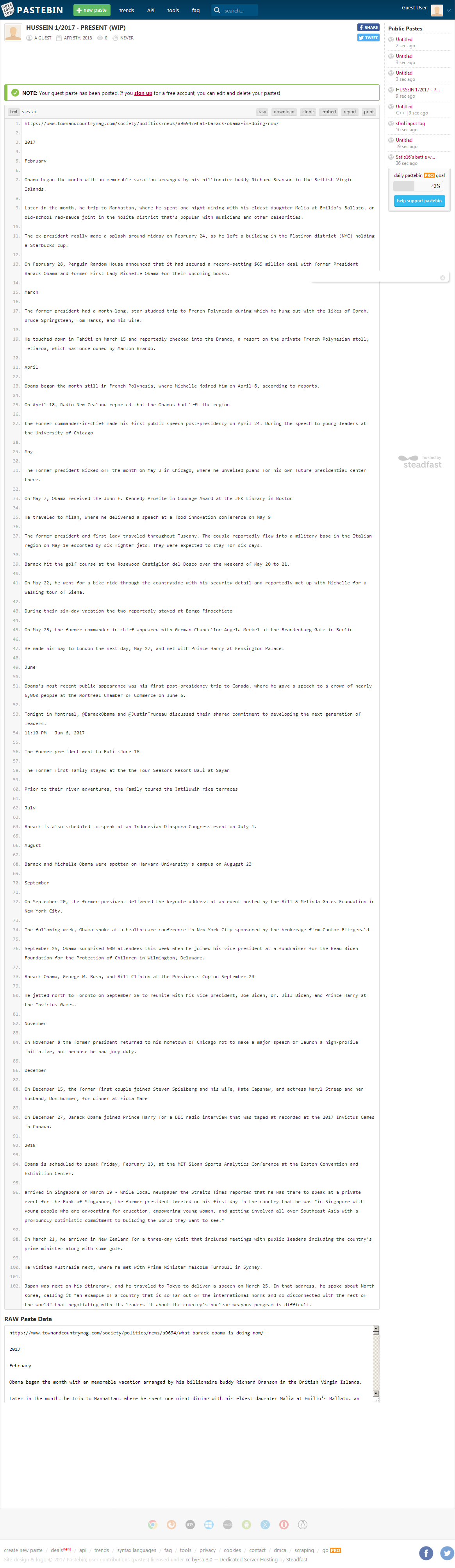 Here's a timeline of Obama (Hussein)
