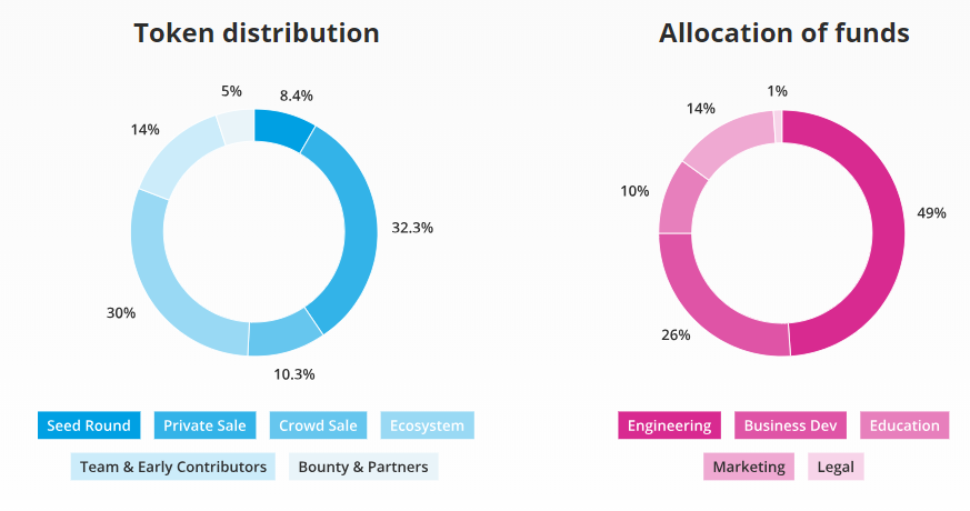 Distribution of the funds raised at sale of tokens: