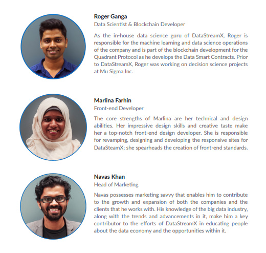 DataStreamX (DSX) has operated its data marketplace and data brokerage business since 2015. Its mission is to unleash the power of the data from the world by facilitating the transacting of data between buyers and sellers on its platform. The Quadrant Protocol is a separate project which aims to continue this mission. DSX would provide development services for the Quadrant Protocol. It would support the Quadrant network in building the protocol to help users solve real-world problems and to create foundations of transparency and authenticity in the data economy.
