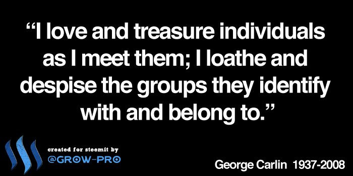"I love and treasure individuals as I meet them; I loathe and despise the groups they identify with and belong to." G.Carlin