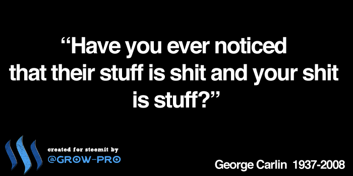 "Have you ever noticed that their stuff is shit and your shit is stuff?" G.Carlin