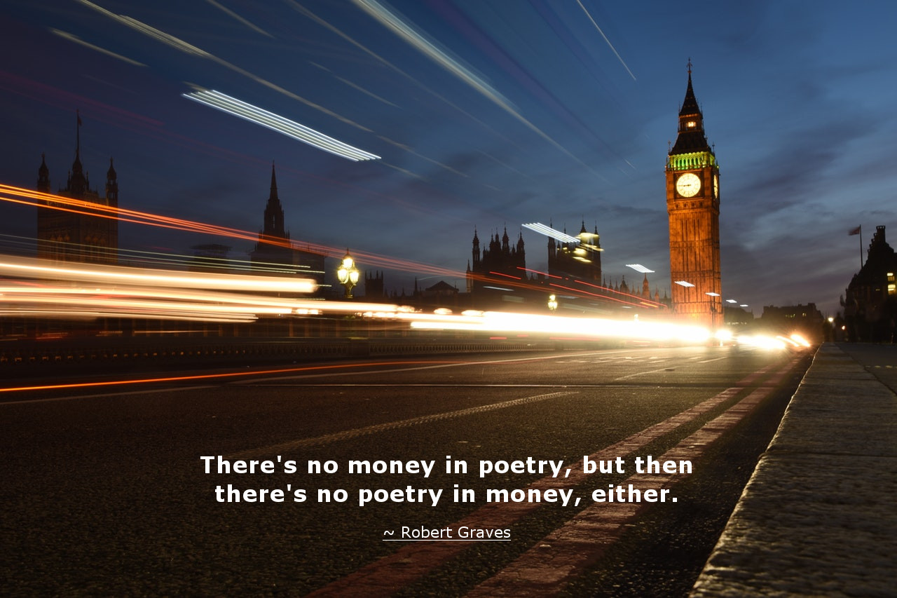 Money Quotemoneyminds (44)in #quotes • 8 years ago Money Quote There's no money in poetry, but then there's no poetry in money, either. ~ Robert Graves #money #moneyminds #finance #freetopia