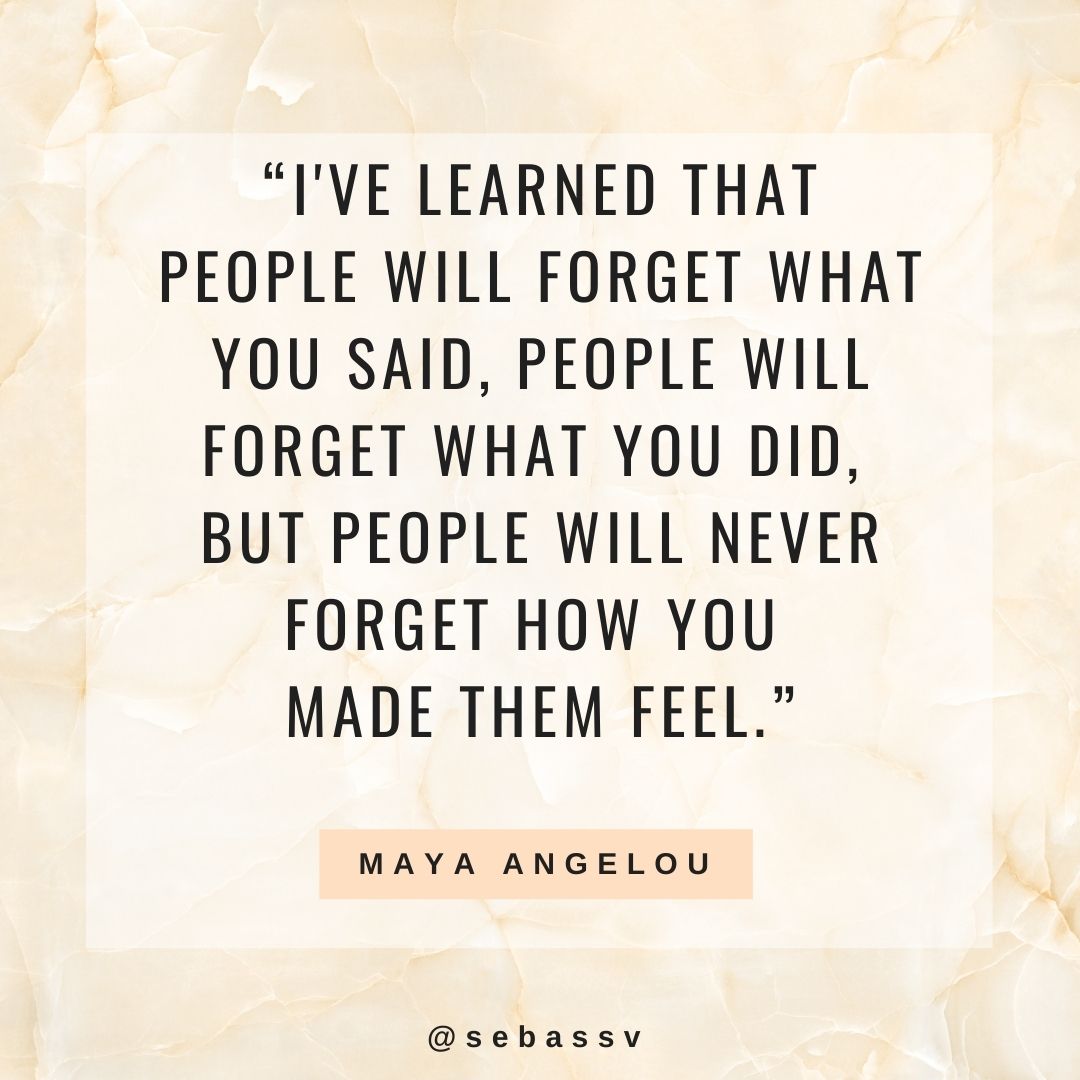 3 . “I've learned that people will forget what you said, people will forget what you did, but people will never forget how you made them feel.” - Maya Angelou
