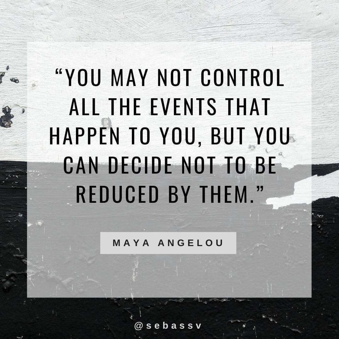 9 . “You may not control all the events that happen to you, but you can decide not to be reduced by them.” -Maya Angelou