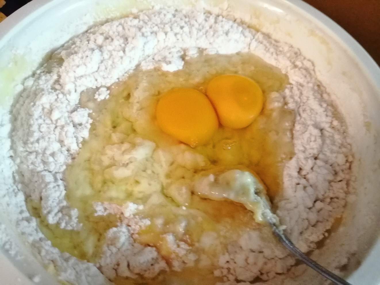 - Add flour and eggs