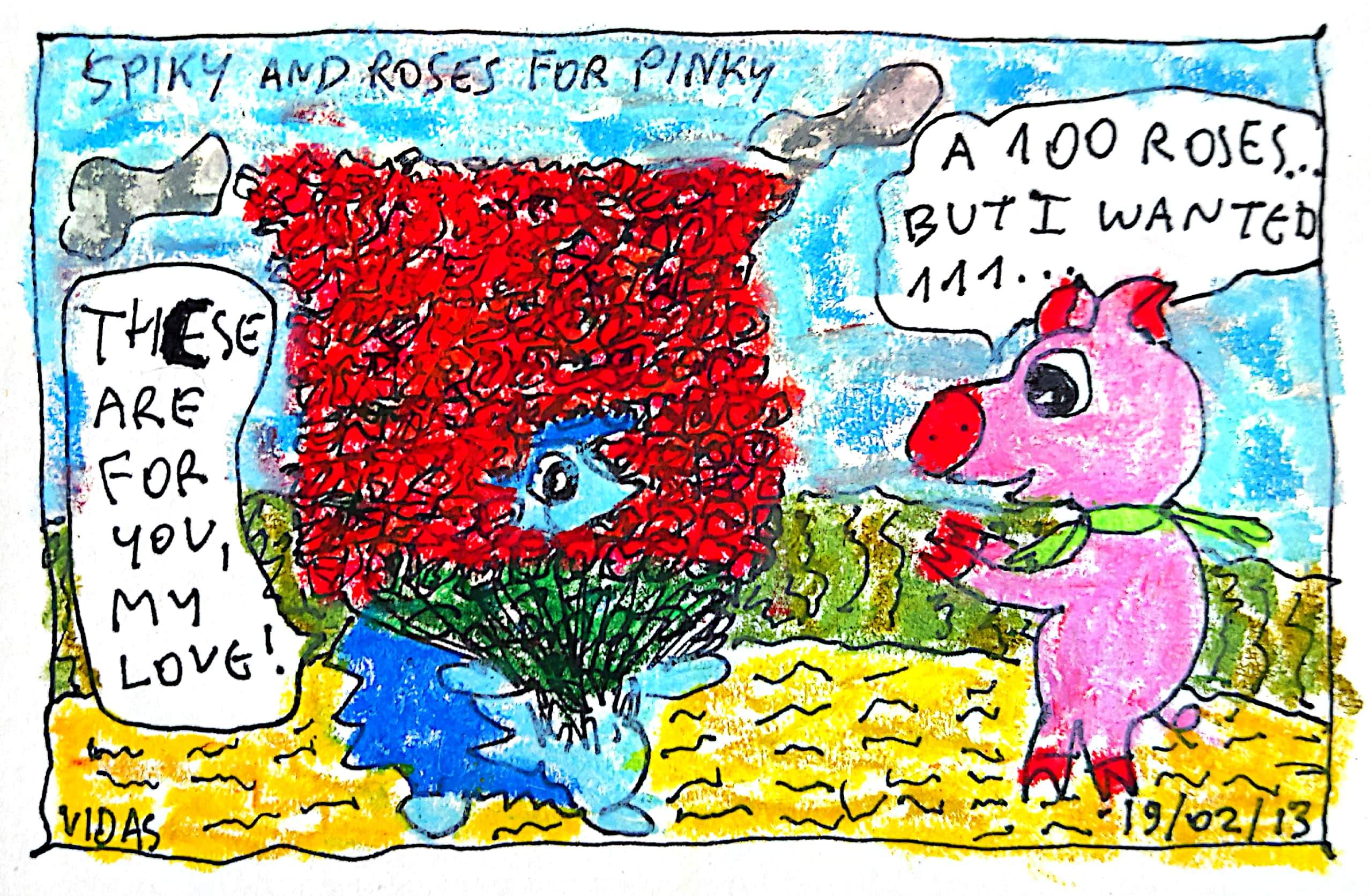 Spiky on Valentine's day wanted to make a surprise for Pinky. He went to animal's market on the city hall square in Browneartopia and looked for red roses. A donkey was selling a whole bunch of them from his cart