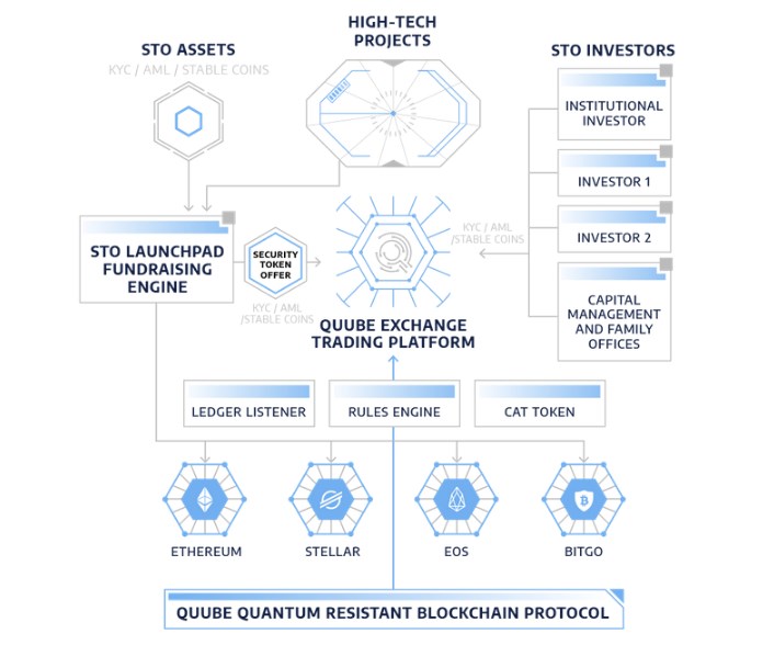 The QUUBE team has worked out software for cryptocurrencies exchanges and crypto wallets which operates with the blockchain recording trading logs and balances. You might ask yourself why to invest in QUUBE, well, the highly professional team has succeeded to implement the first quantum-safe ecosystem and security token launchpad with the exchange platform enabling STO/ICO projects to fundraise expeditiously amongst accredited and non-accredited investors.