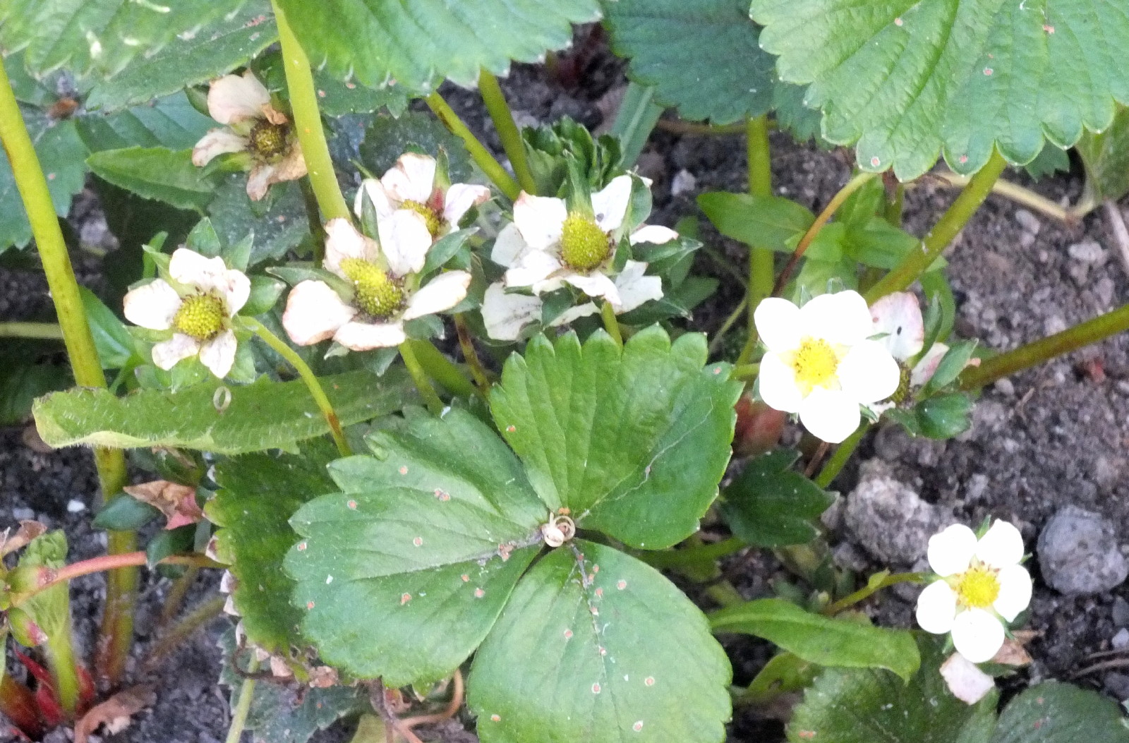 Meanwhile, our strawberry plants have finally set blooms!