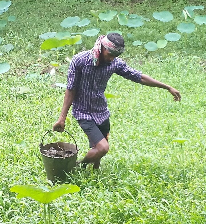For those who can't get the soil in the pond, the tips for them are to mix leaf mold or leaf decaying fertilizer with the soil!