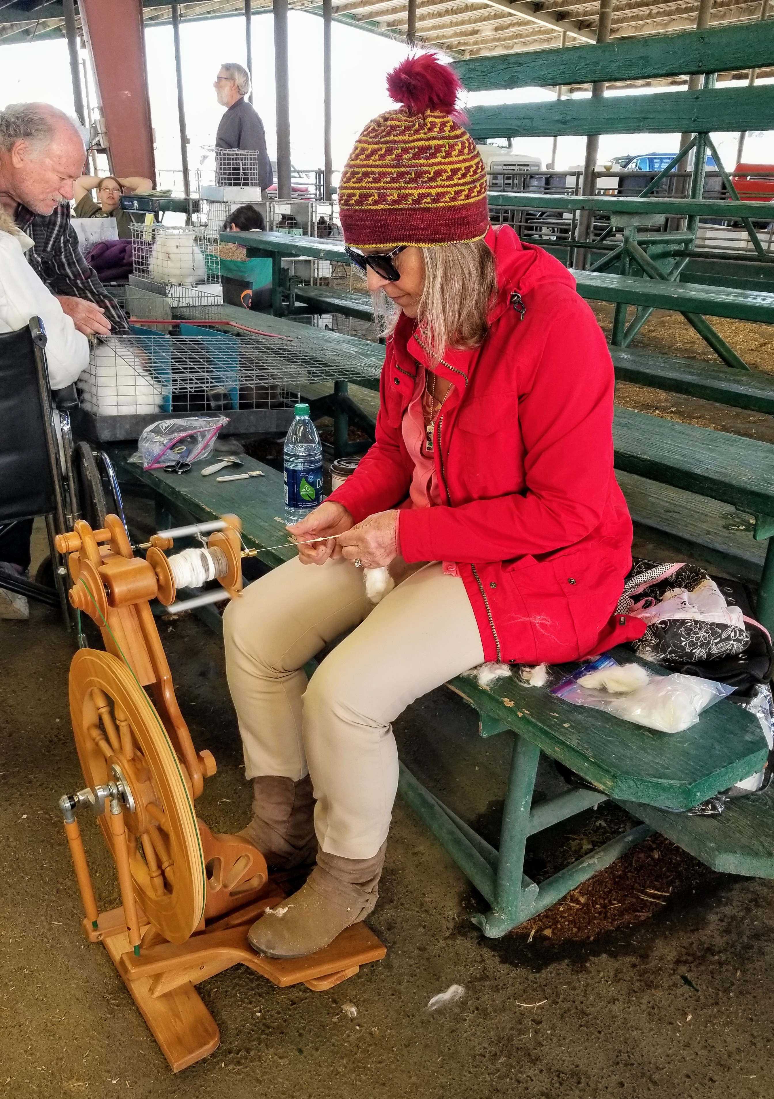 One woman brought her spinning wheel. She told me she doesn't even have any rabbits, but she wanted to try out spinning some rabbit fiber instead of sheep's wool for a change.