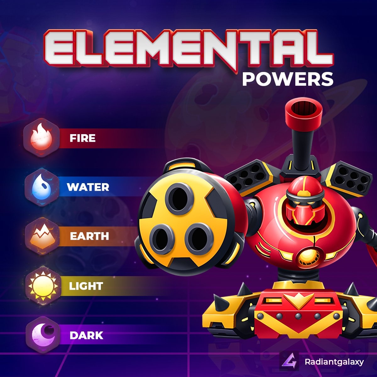 Players gets a real life experience as they can bike their own economy with their GRobots army on the Radiant Galaxy Galaxyverse. New unique features are available waiting to be discovered and build in each planet of the Galaxyverse. Land will be very valuable snd a necessity in the Radiant Galaxy Galaxyverse.