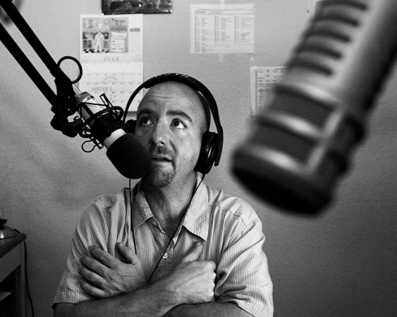Mike Hagan in the KOPN library
