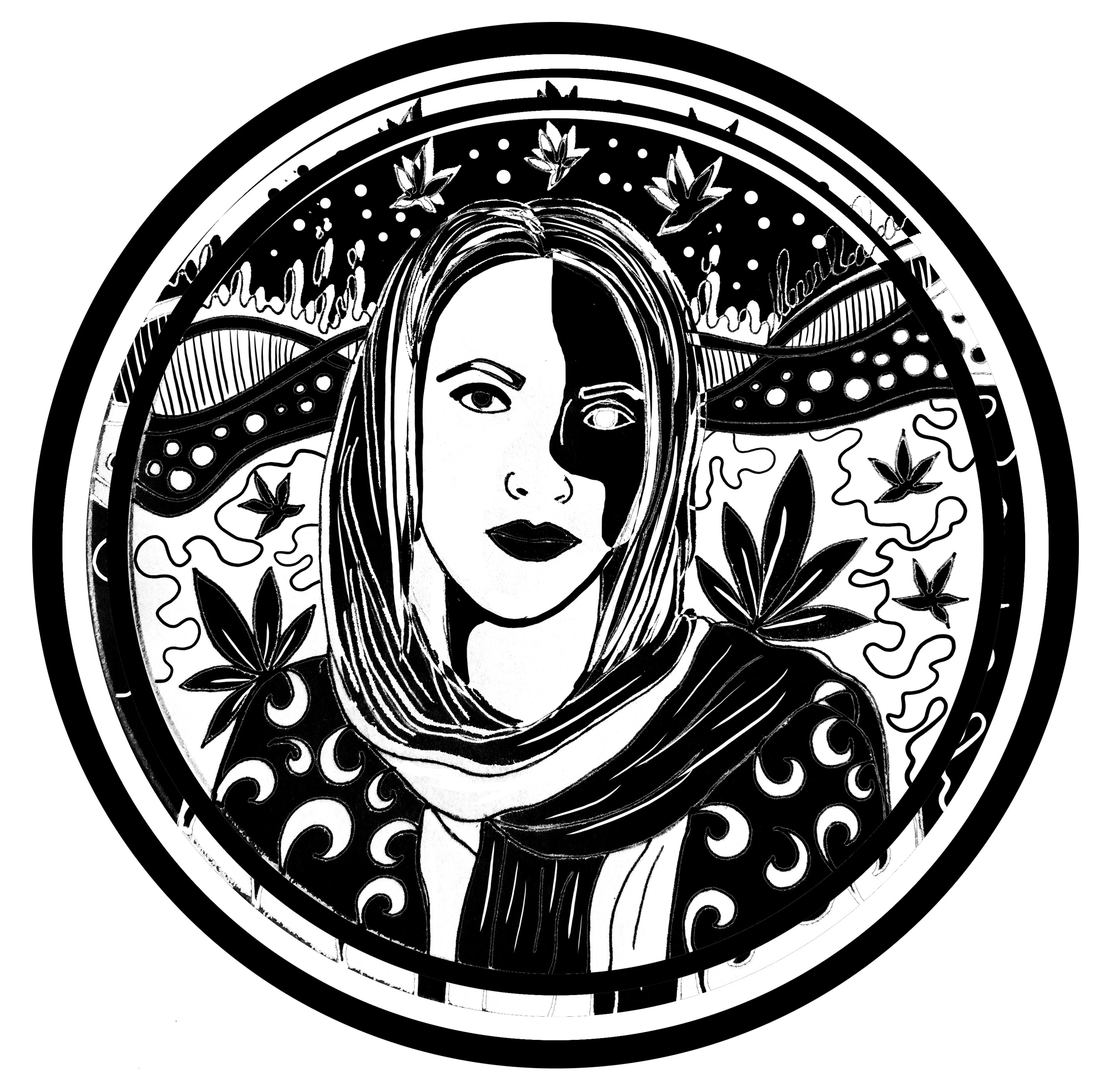 Selfportrait , girl and cannabis series I draw my selfportrait in this circle , i draw it with pen on paper and then edit it in photoshop