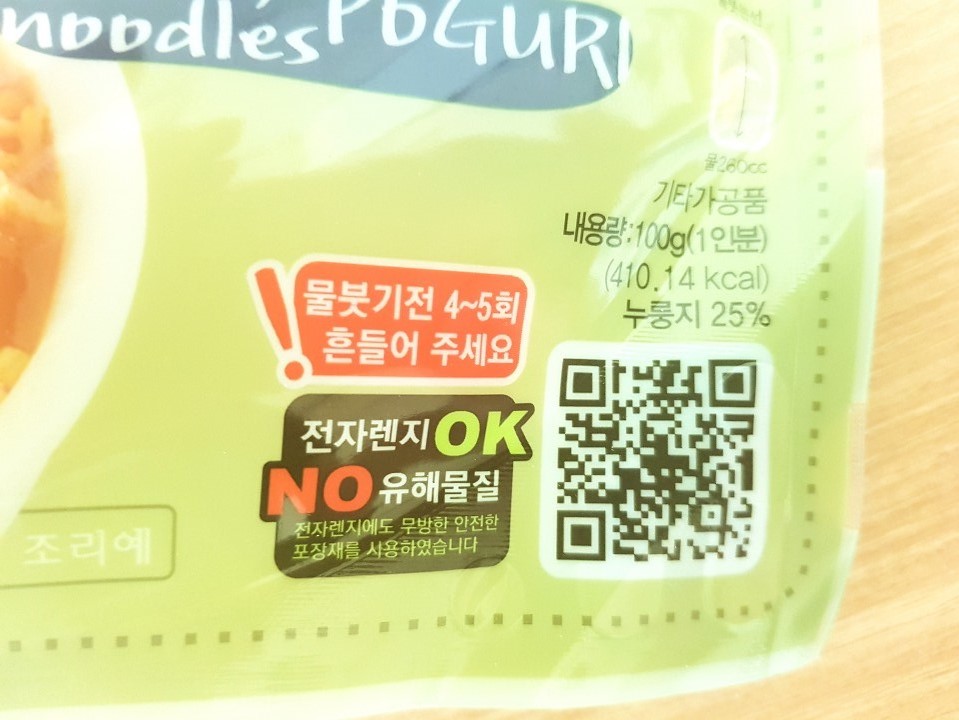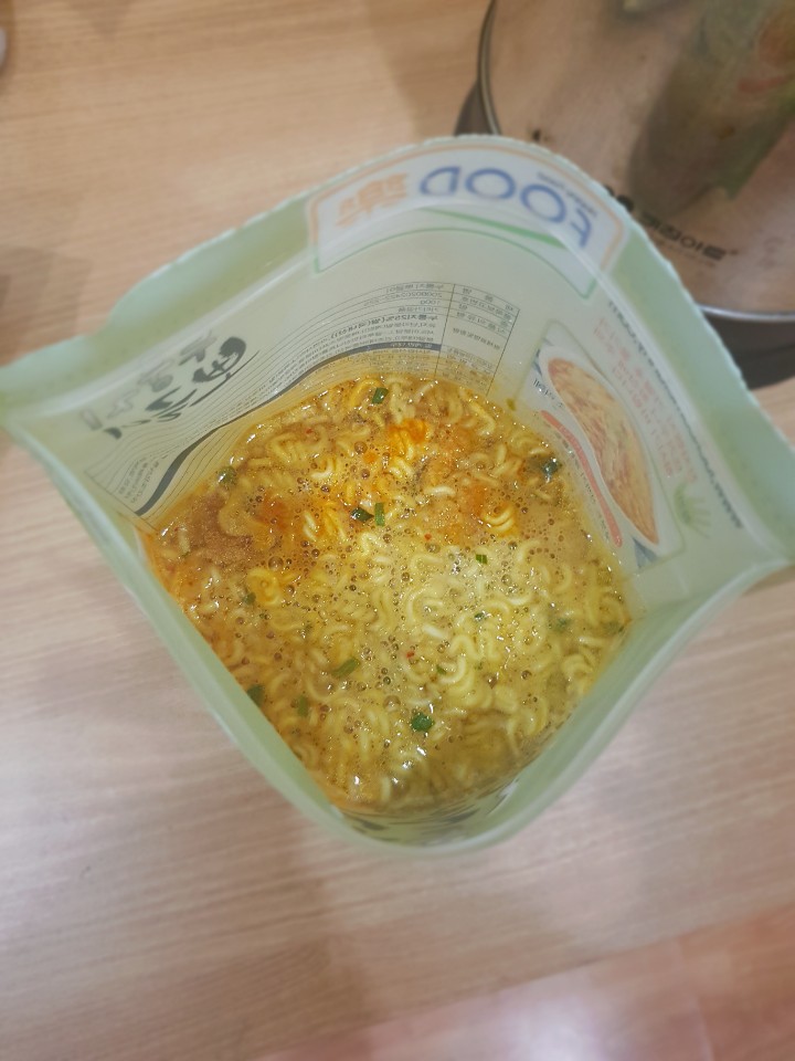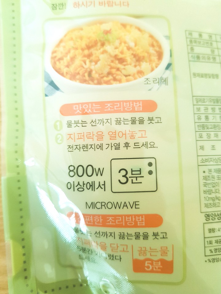 전자레인지에 돌려서 면이 꼬들꼬들하고