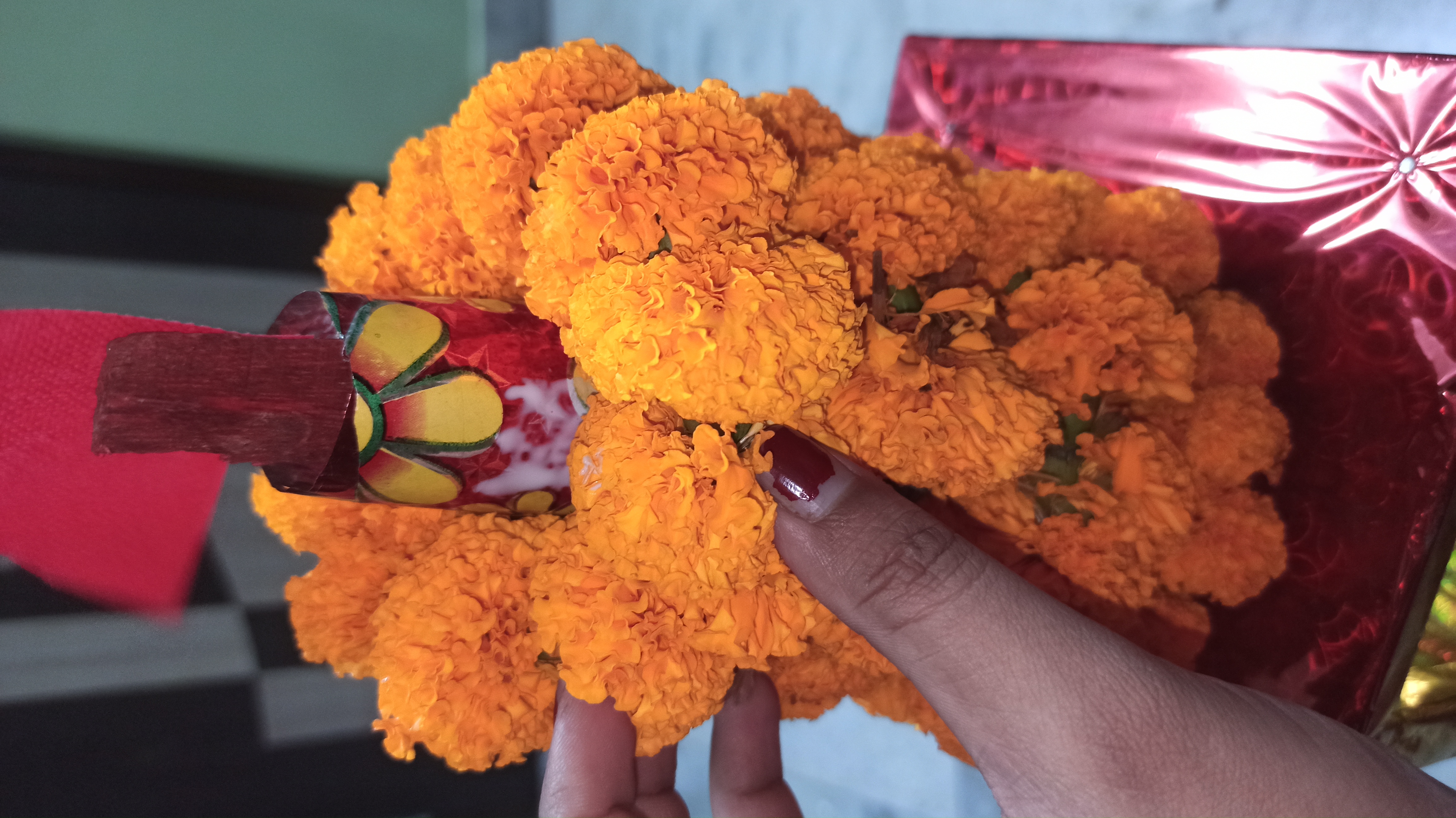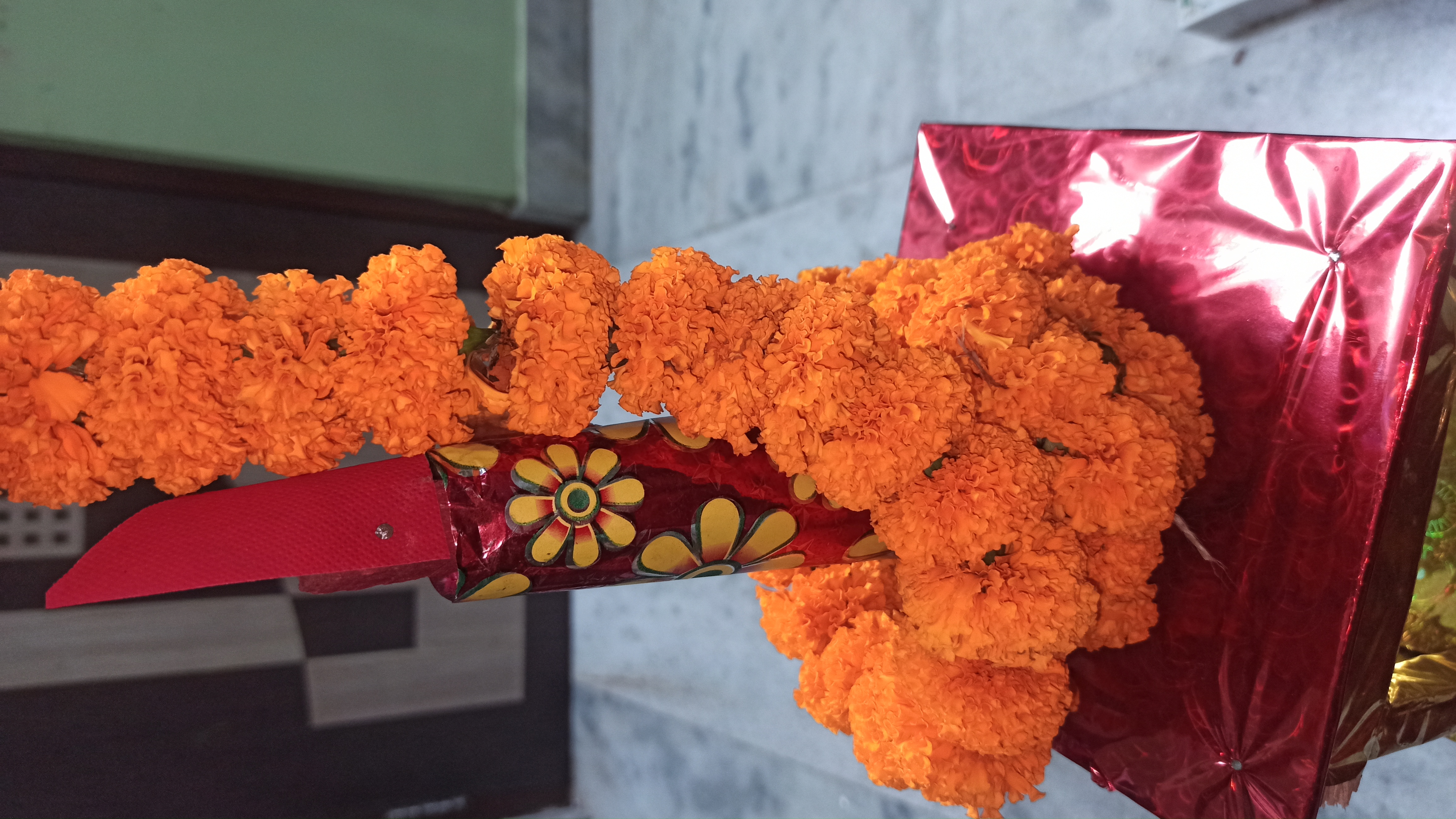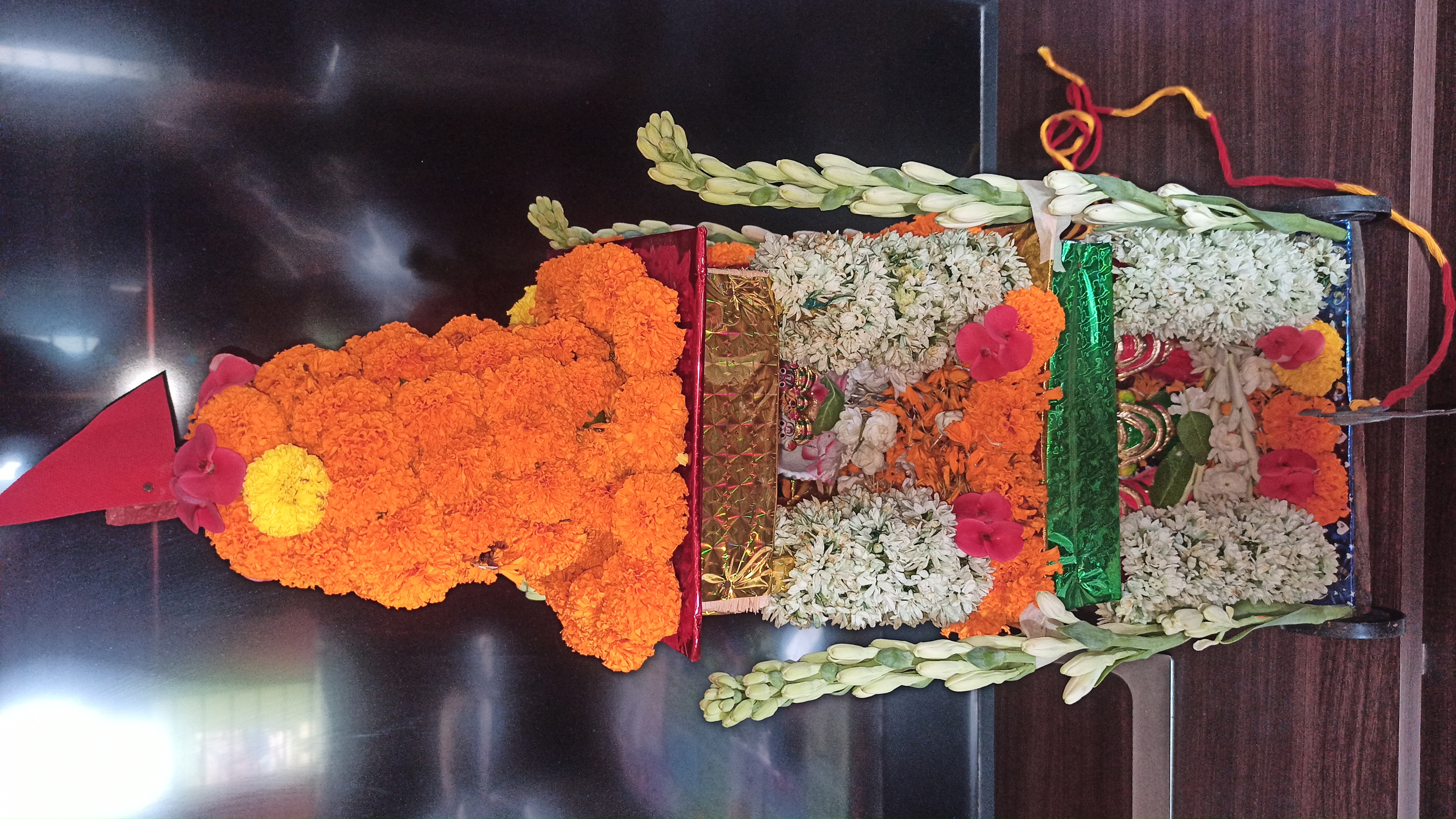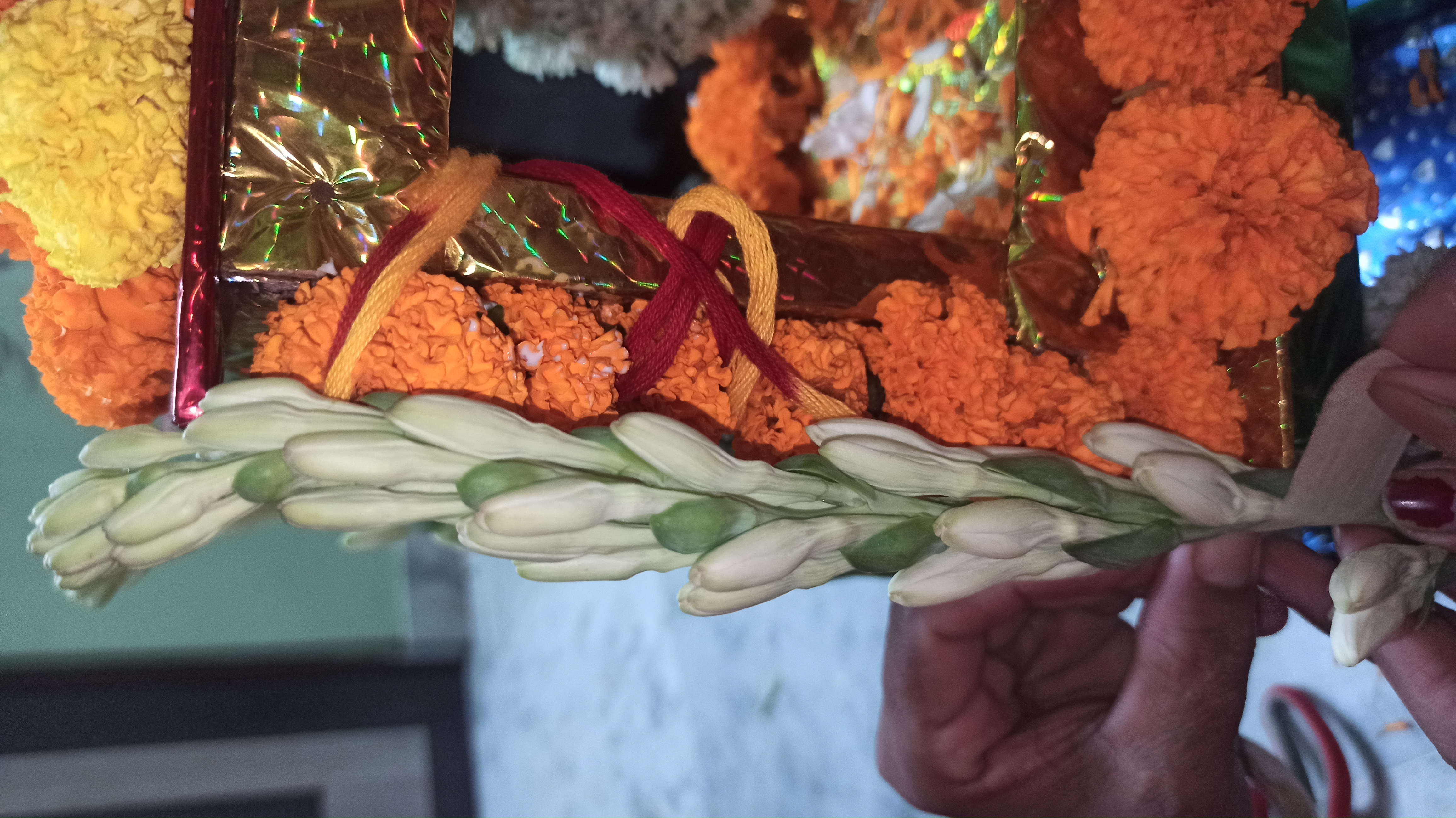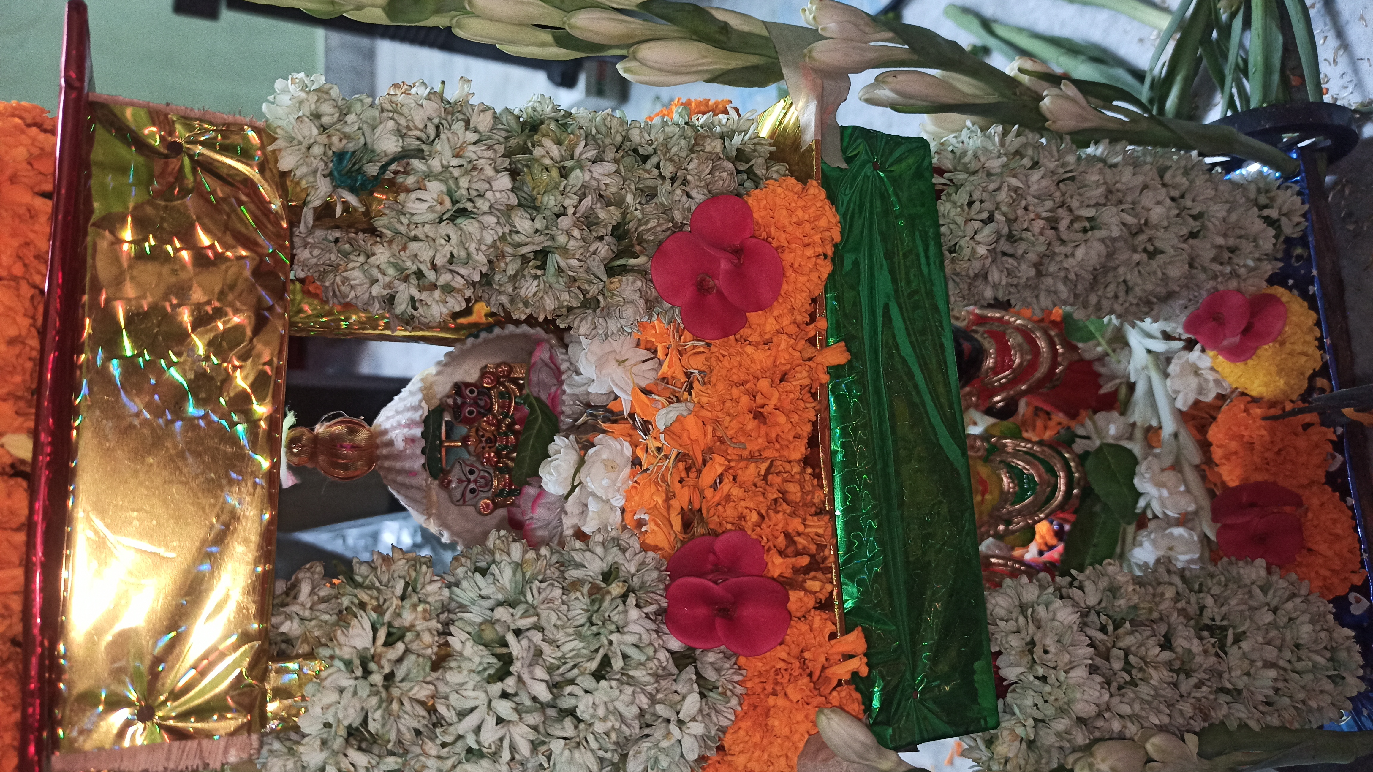 গতকাল রাতে একটা বাজার থেকে একটা রথ কিনে এনেছিলো টিনটিন বাবুর জন্য।তাই ভাবলাম রথটিকে একটু সাজিয়ে দেই। আসলে আমি আগে কোনদিন রথ সাজায়নি। তাই ভাবলাম এবার সাজানো যাক। তাই বাজার থেকে কিছু গাধা ফুলের মালা জুঁই ফুলের মালা ও কিছু গাধা ফুল এনে নিলাম।