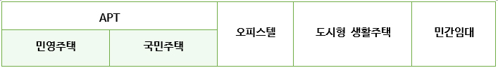 청약으로 구매할 수 있는 주택의 종류는 아파트, 오피스텔, 생활주택, 민간임대 주택이 있습니다.