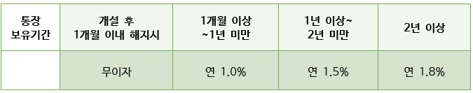 - 매월 정해진 날에 최소 2만원 ~ 최대 50만원까지 매월 같은 날, 원하는 금액을 통장에 예치.