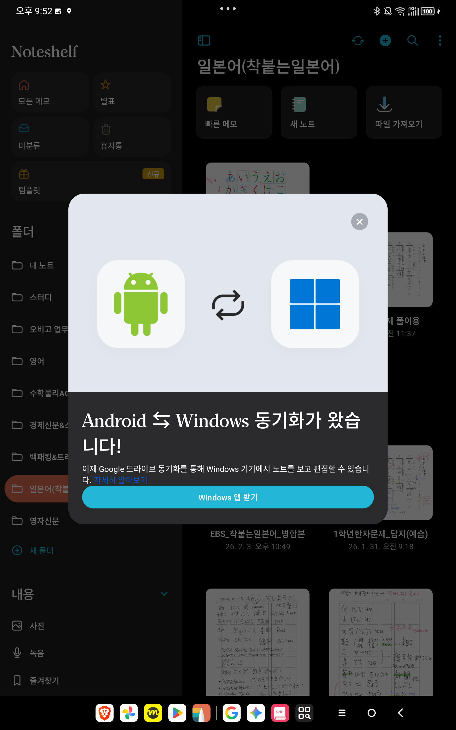 | 노트쉘프 윈도우 동기가 가능 |