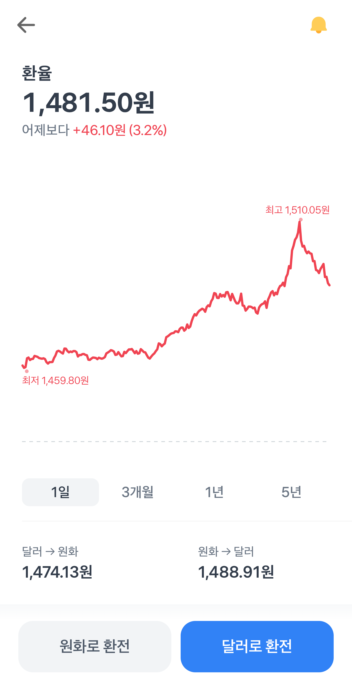 | 밤에 환율이 1500원을 넘었었음 |