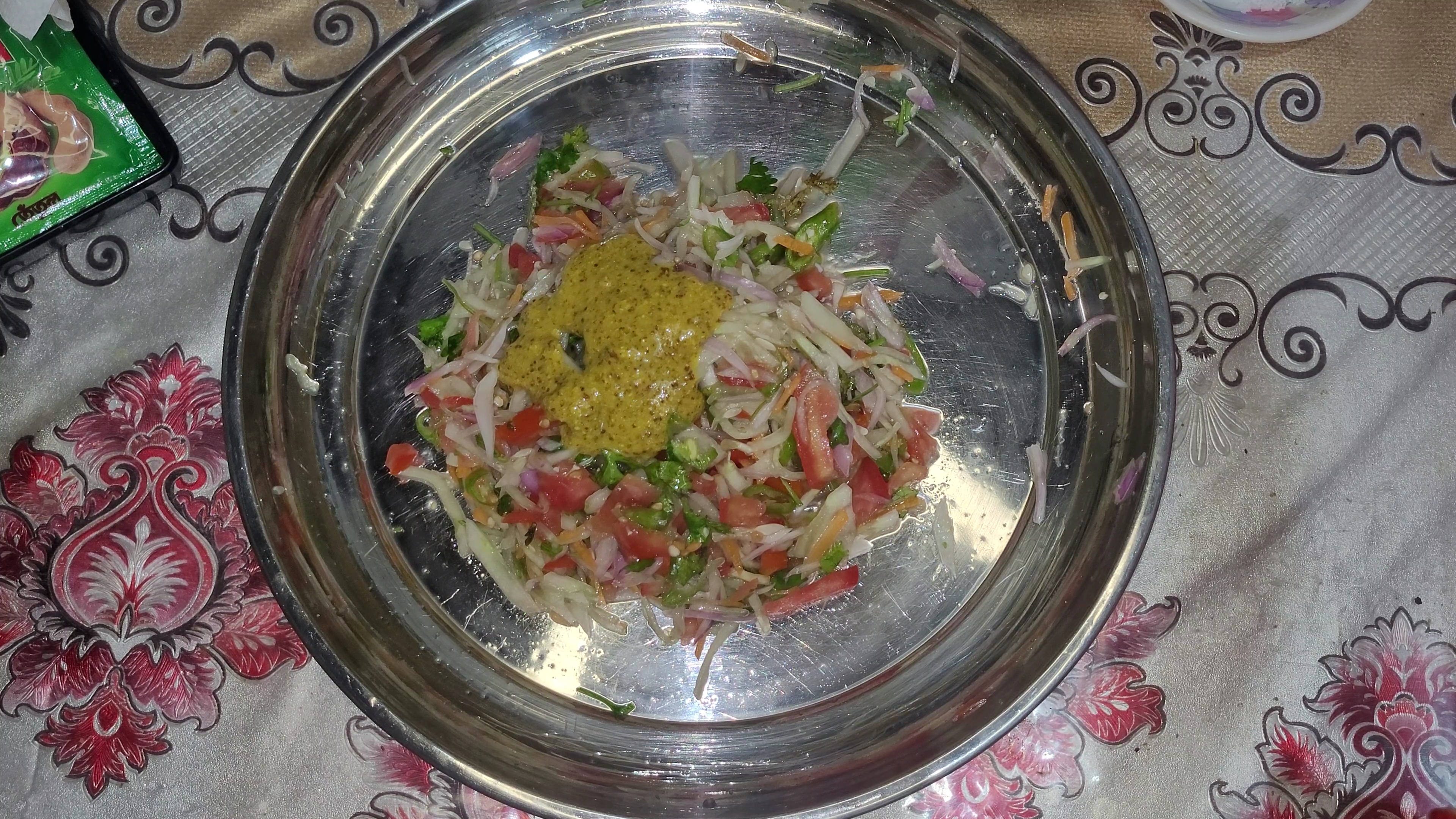 এখন ধনেপাতাকুচি এবং টমেটো কুচি একসাথে সব মেখে নিলাম।