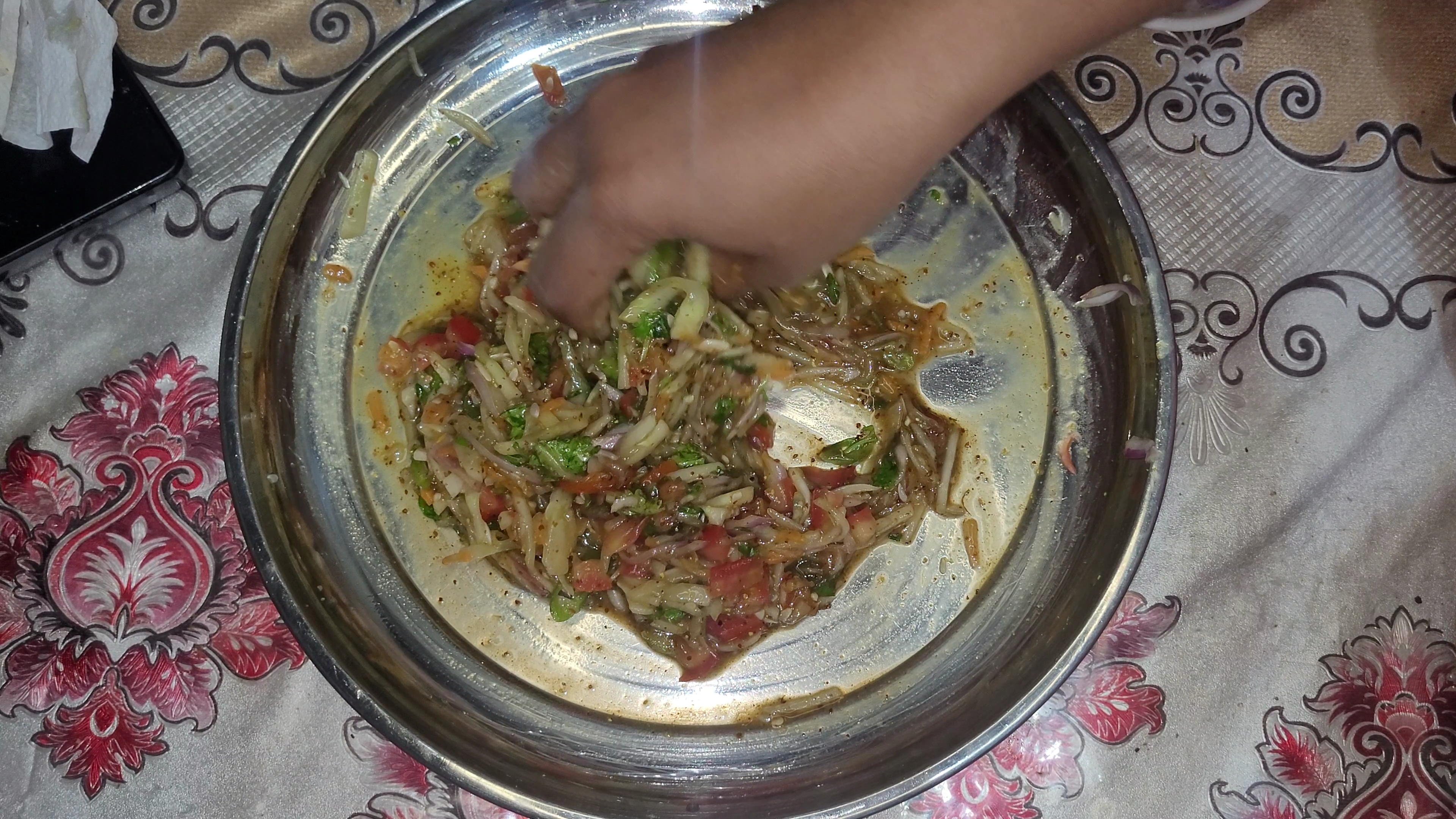 একদম শেষে শসাকুচি ছিল সেটা মেখে নিলাম সবকিছুর সাথে।এমনভাবে মেখে নিতে হবে যাতে সবকিছু একদম নরম হয়ে যায়।