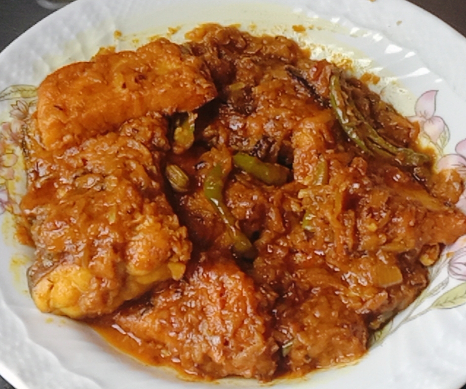 পরিবেশনের জন্য প্রস্তুত রুই মাছের দোঁ-পেঁয়াজা।