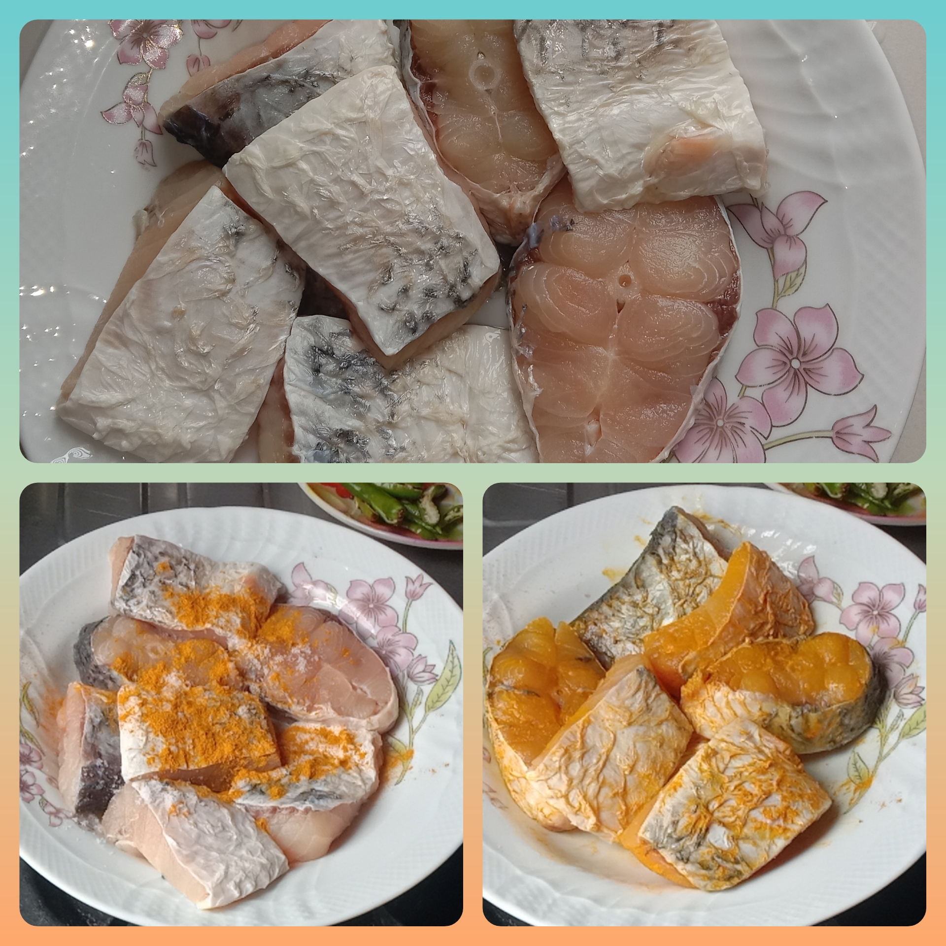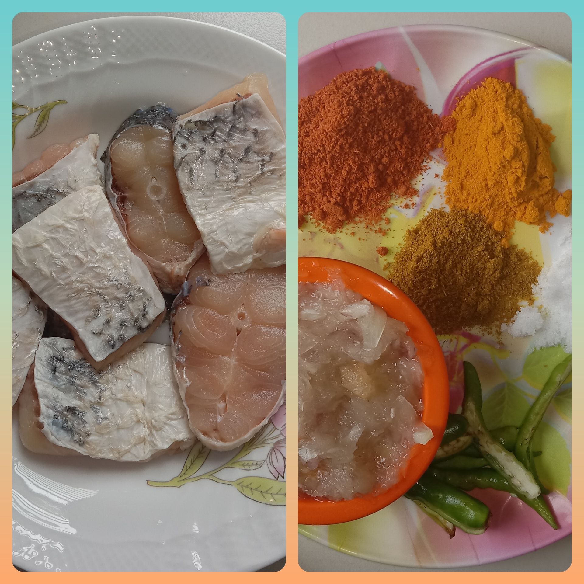 রুই মাছ গুলো ভালো করে ধুয়ে জল ঝরিয়ে লবণ হলুদ গুড়া দিয়ে ভালো করে মাখিয়ে নিলাম।
