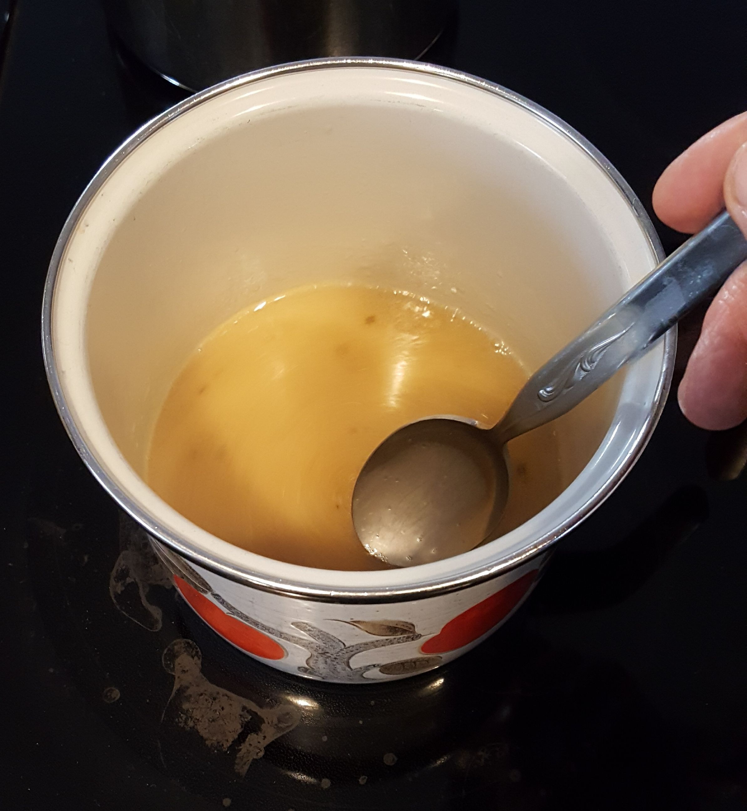 Pour it all into a pot and then in a small container mix some corn startch with cold water(needs to be cold). Add the wet corn starch to the pot and heat until it thickens continously stirring.