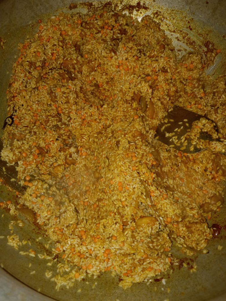 আজকে আমি খিচুড়ি রান্না করছি । খিচুড়িটি খেতে অনেক সুস্বাদু হয়েছিল । খিচুড়ি খেতে আমি অনেক পছন্দ করি আর আমার পরিবারে আমার ভাই বা সবাই অনেক পছন্দ করে। সেজন্য প্রায়ই মাঝেমধ্যে খিচুড়ি রান্না করা হয়। আর ভাবলাম আজকে আপনাদের সাথে একটি খিচুড়ি রেসিপি শেয়ার করি। খিচুড়ি রান্না করার জন্য আমি খিচুড়িতে ব্যবহার করেছি মসুরের ডাল আর মুরগির মাংস। আমি আমার পছন্দ মত উপকরণ দিয়েই রান্না করেছি। রান্না করার পর সবাইকে পরিবেশন করে দিয়েছি সবাই আমরা অনেক মজা করে খেয়েছি দুপুরবেলা। খুবই নরমাল ভাবে আমি খিচুড়িটি রান্না করেছি পেঁয়াজ, রসুন তেলে ভেজে তারপর মাংস ডাল দিয়ে চাল দিয়ে রান্না করে ফেলেছি।