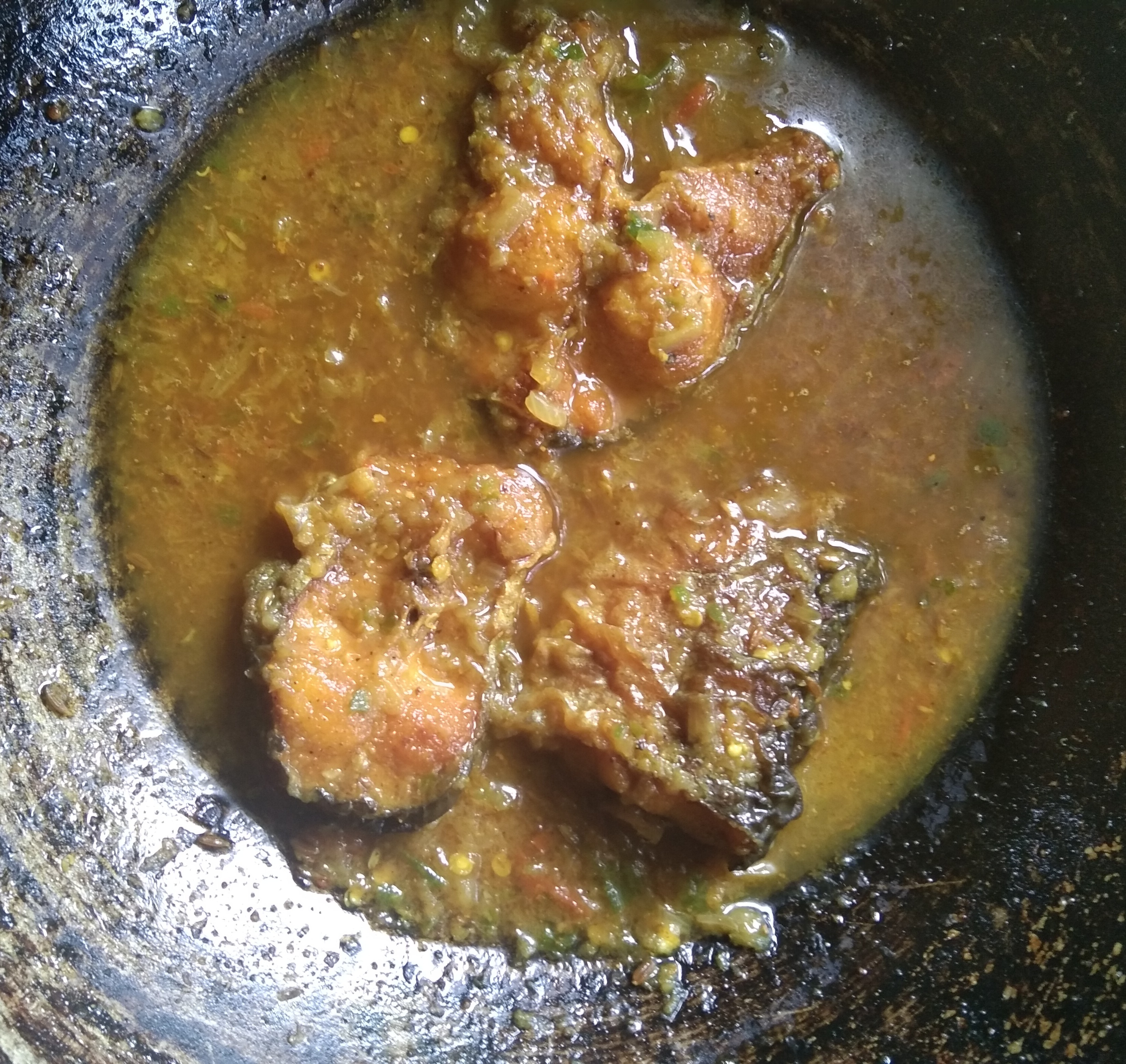 এবার আমি মাছটা সিদ্ধ হওয়ার জন্য পরিমাণমতো পানি দিব। আপনারা সব সময় খেয়াল রাখবেন পানির পরিমাণ অল্প দিবেন। তা না হলে বেশি পানি দিলে ফুটে রান্নার স্বাদ ফুরিয়ে যায়।