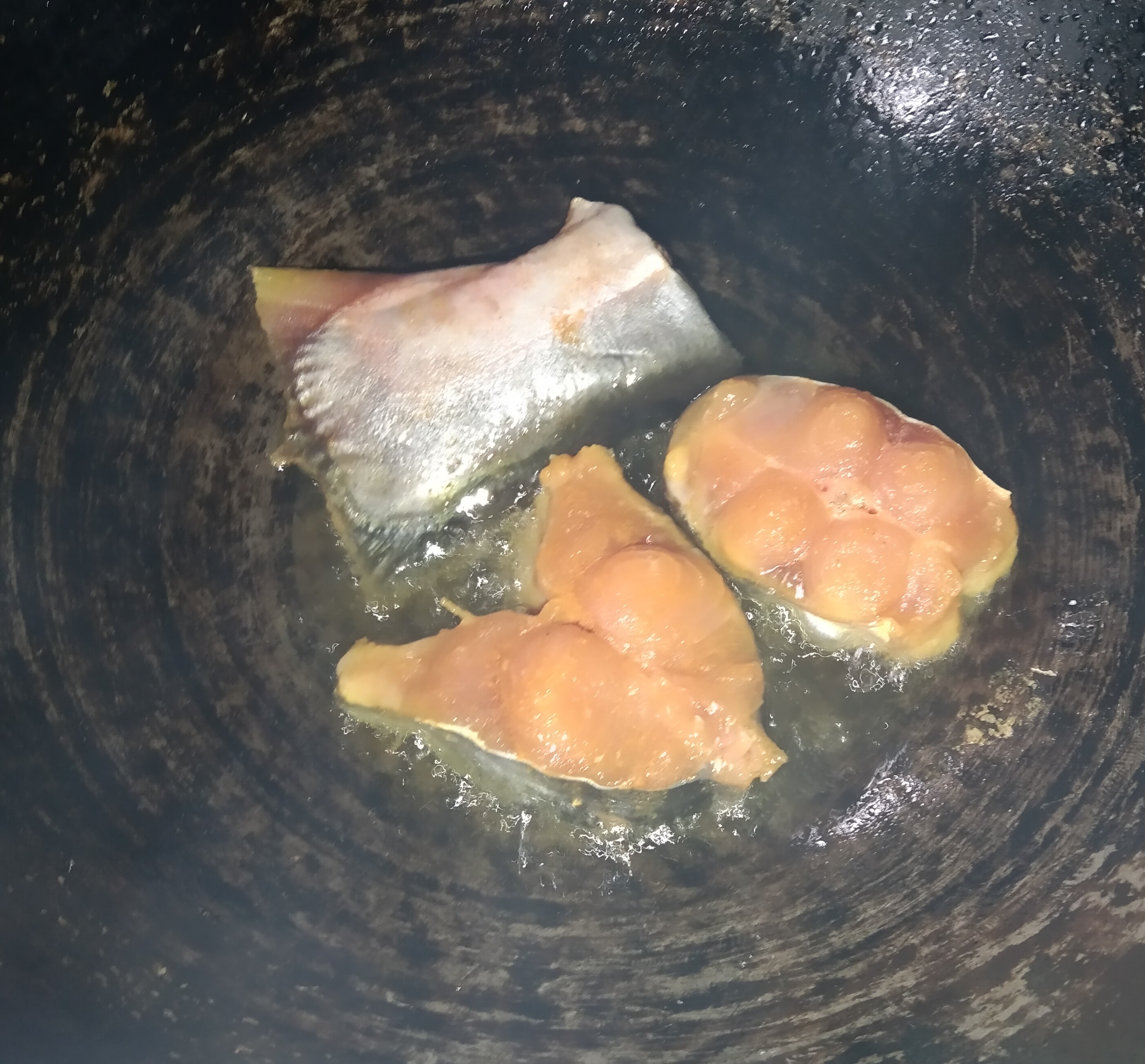 এবার আমি চুলাইয়ে রাখা কড়াইয়ে পরিমাণমতো সয়াবিন তেল দিয়ে তেলটা একটু গরম করে নিব ।যখন দেখব গরম হয়ে গিয়েছে তখন আমি ভাজার জন্য পাঙ্গাস মাছ তেলের উপর ছেড়ে দিব।