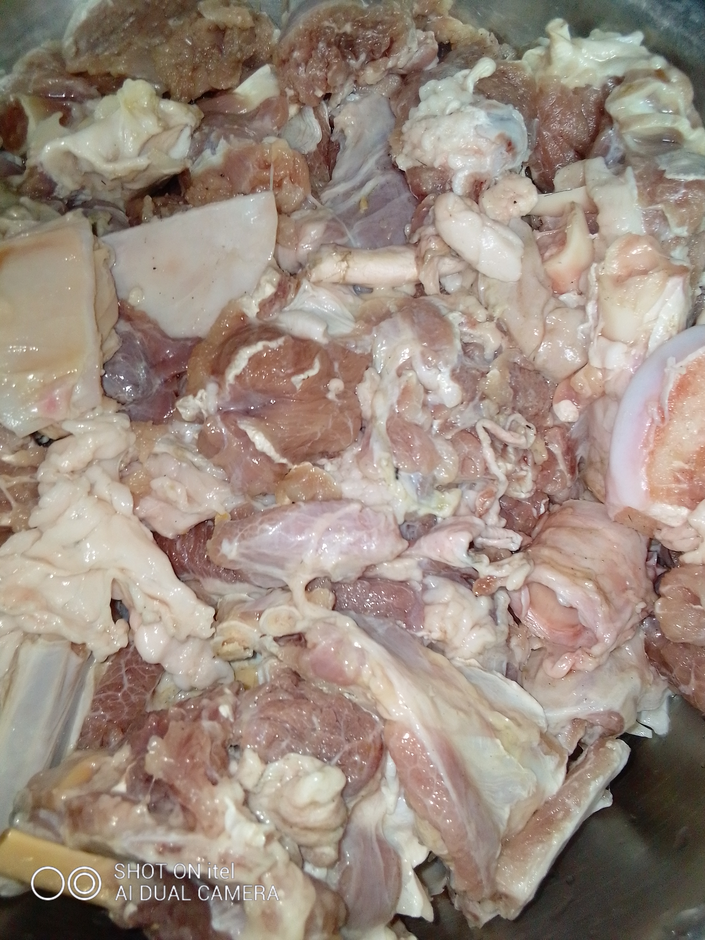 প্রথমে খাসির মাংস গুলো ভালো করে পানি দিয়ে ধুয়ে নিতে হবে।