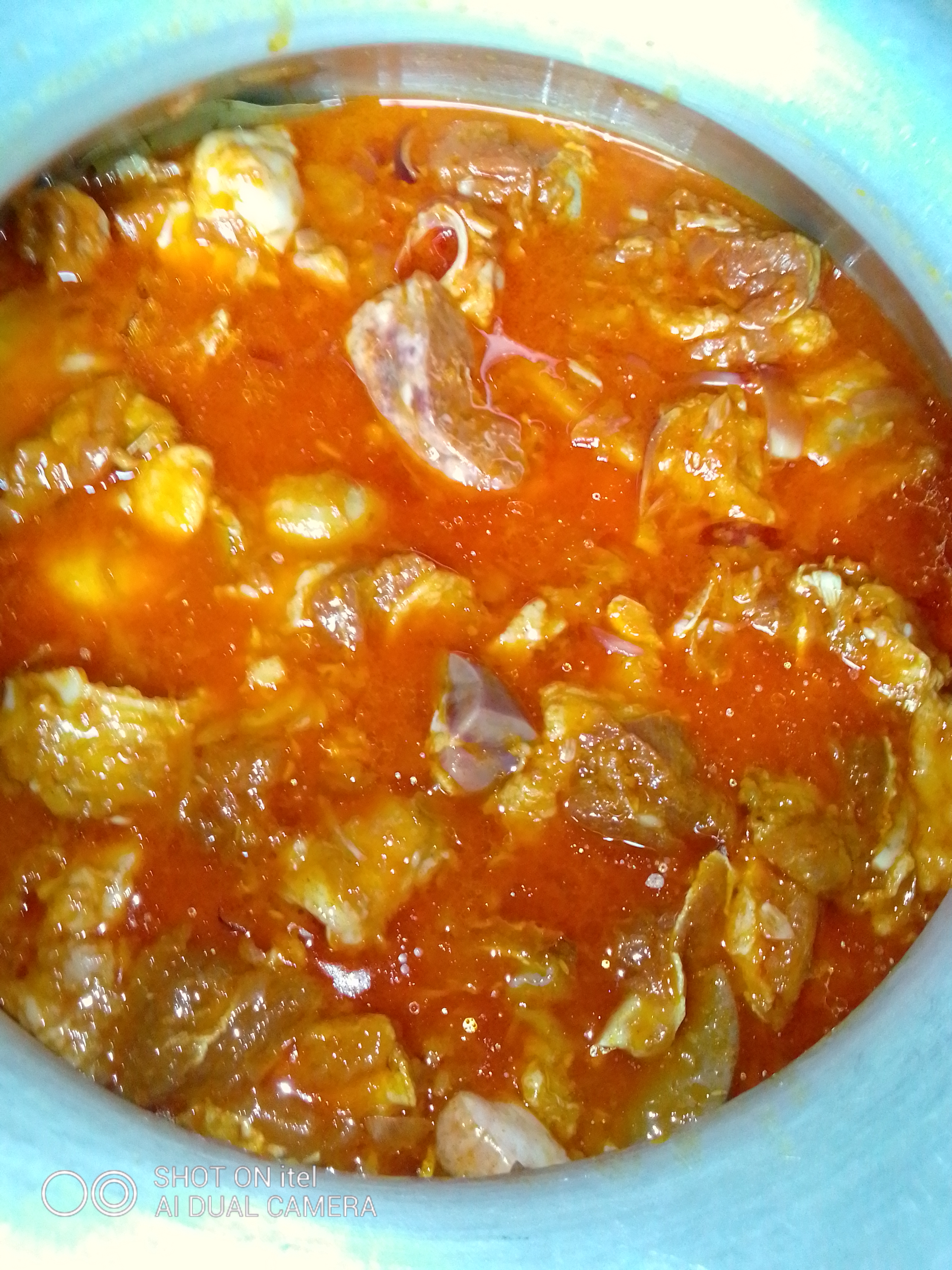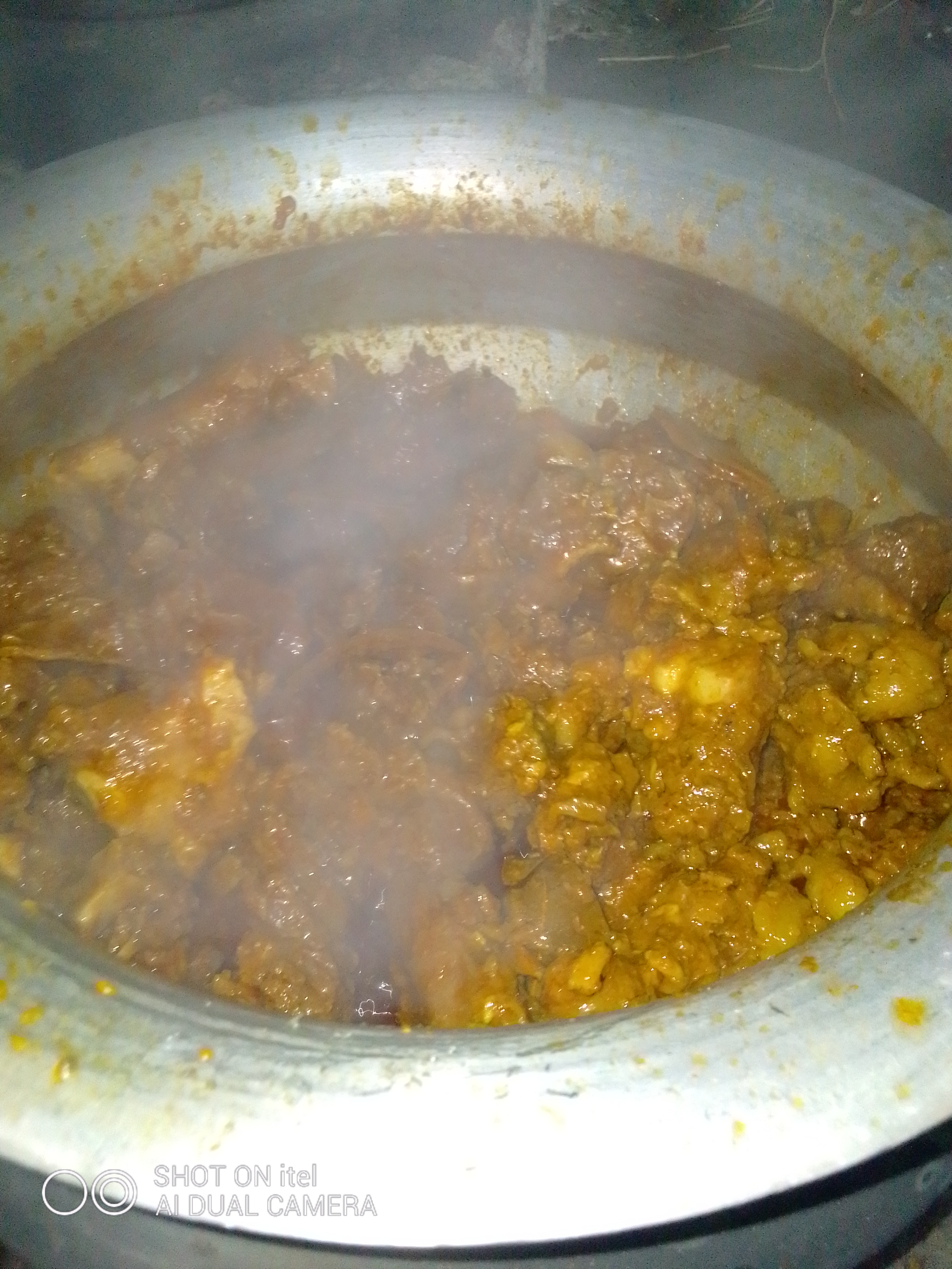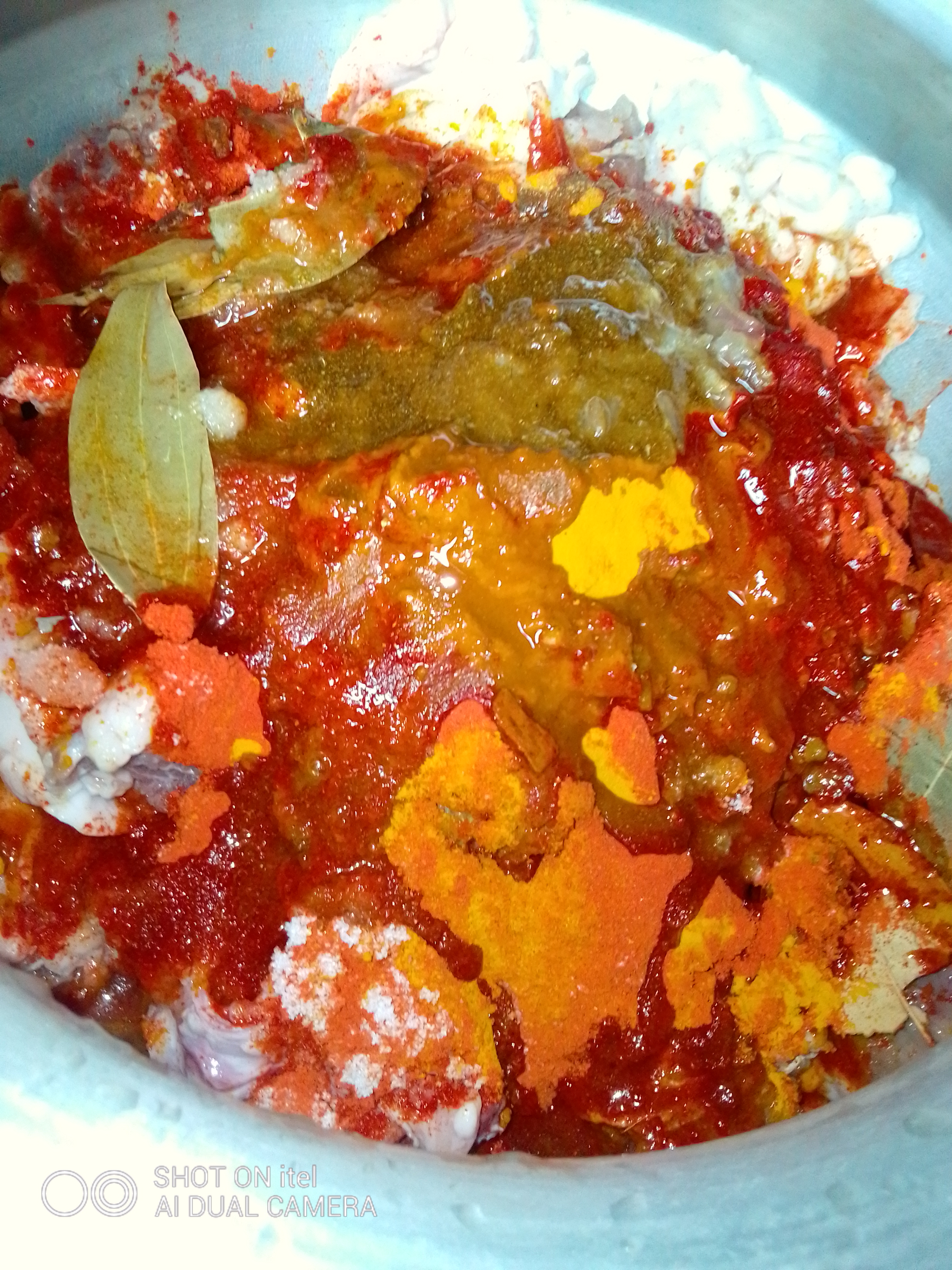 এরপর একটা বড় পাতিলে মধ্যে কাচা খাসির মাংস গুলো দিয়ে তাতে একে একে হলুদগুড়া ধনিয়াগুড়া জিরাগুঁড়া লবণ ও তেল দিয়ে ভালো করে মাখিয়ে নিয়ে কষানোর পানি দিয়ে কষাতে হবে।