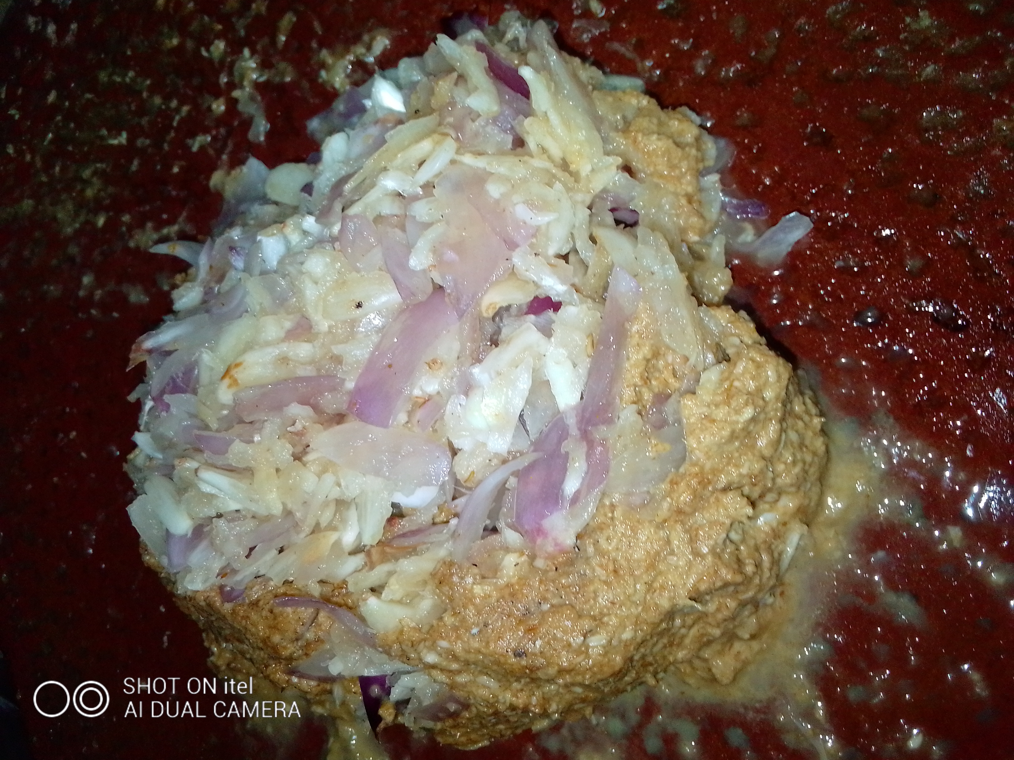 তারপর পিঁয়াজ রসুন ও আদা কেটে নিয়ে তা বেটে নিতে হবে।