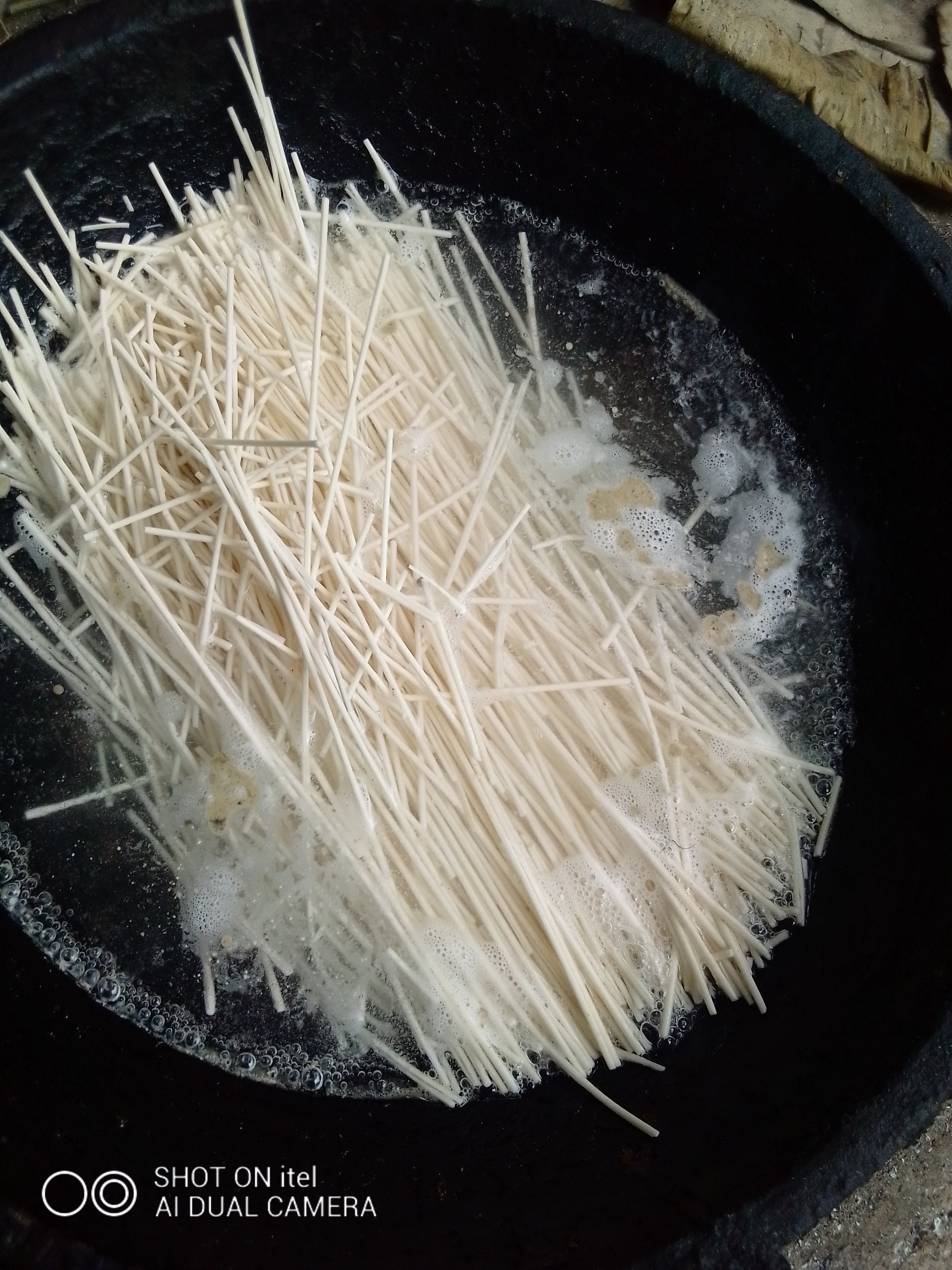 তারপর নুডলস সিদ্ধ করে নিতে হবে। সিদ্ধ হয়ে এলে তা ঝুরি বা সরপসের উপর ঢালতে হবে।