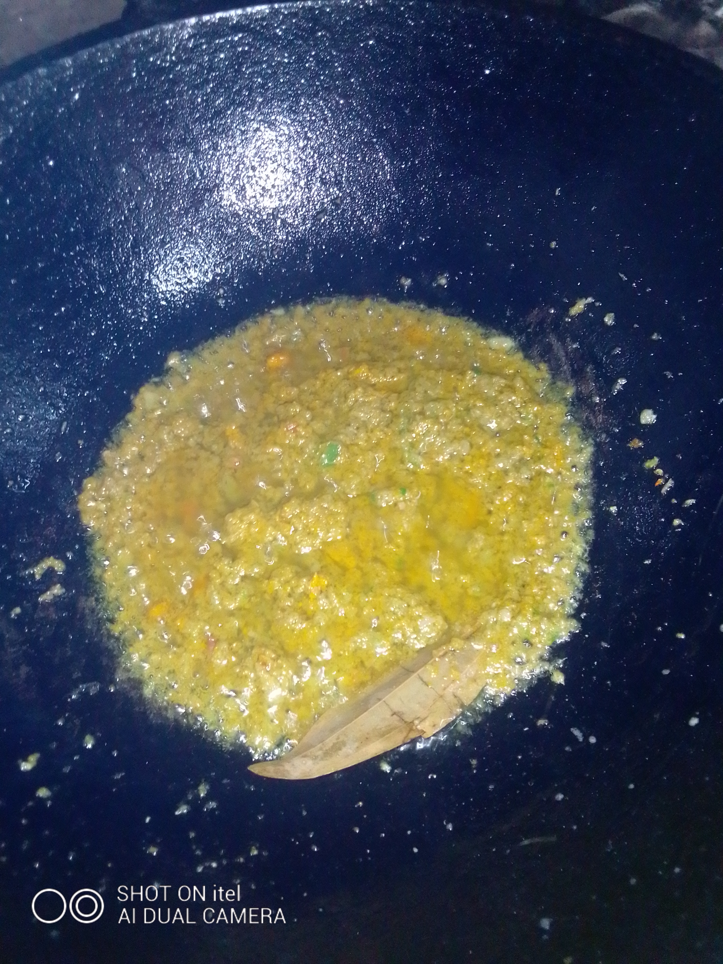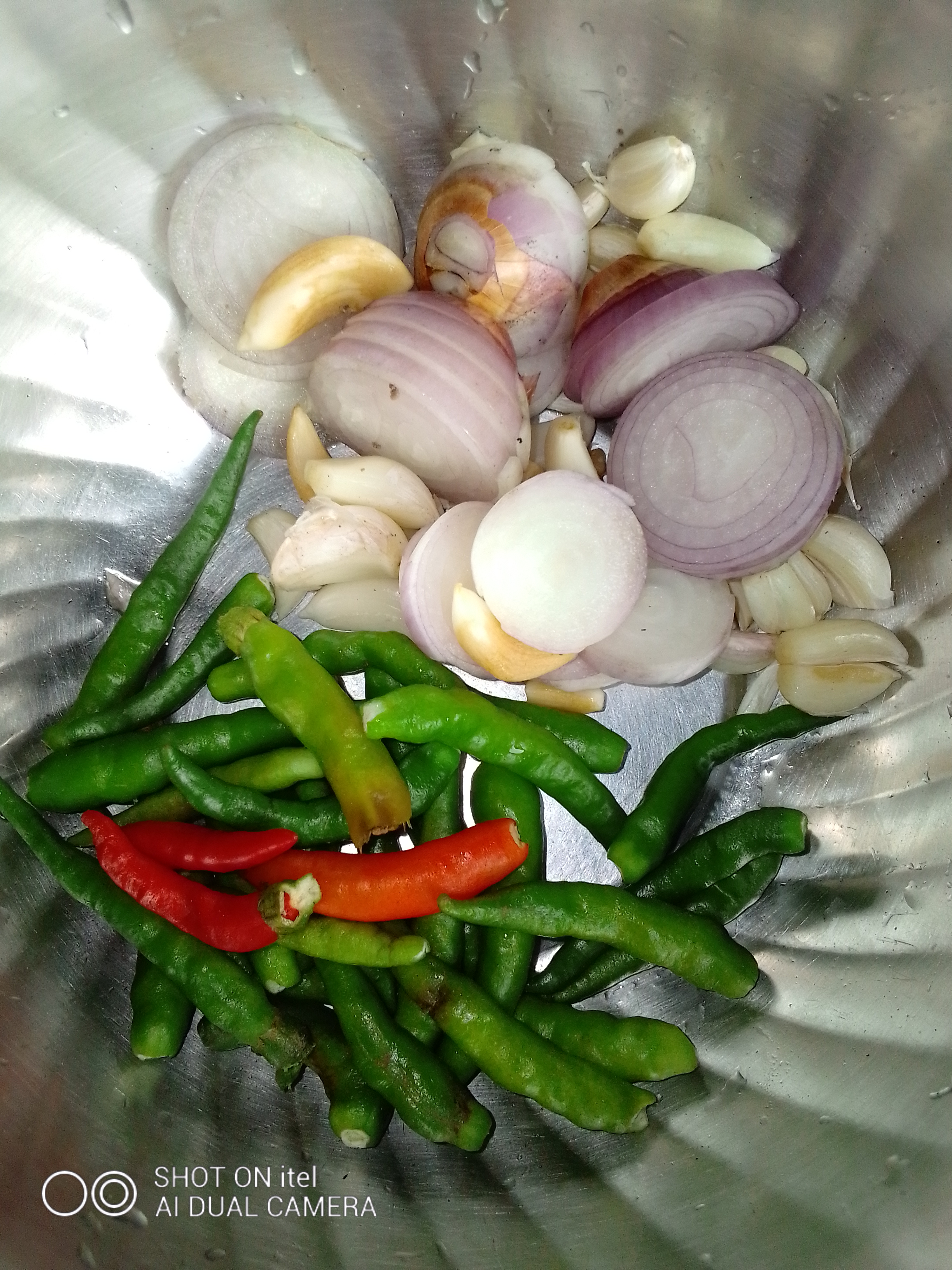 তারপর পিঁয়াজ রসুন কেটে নিয়ে কাঁচা মরিচ গুলো দিয়ে এক সাথে বাটতে হবে। বাটার মধ্যে একে একে হলুদগুড়া জিরাগুঁড়া ওলবণ দিতে হবে।
