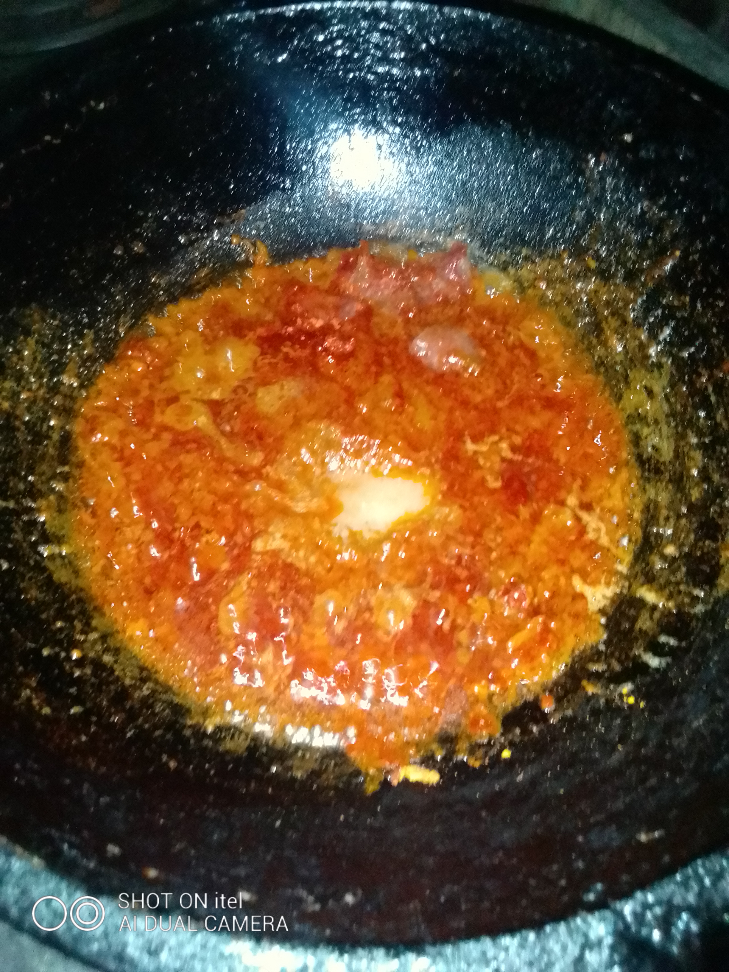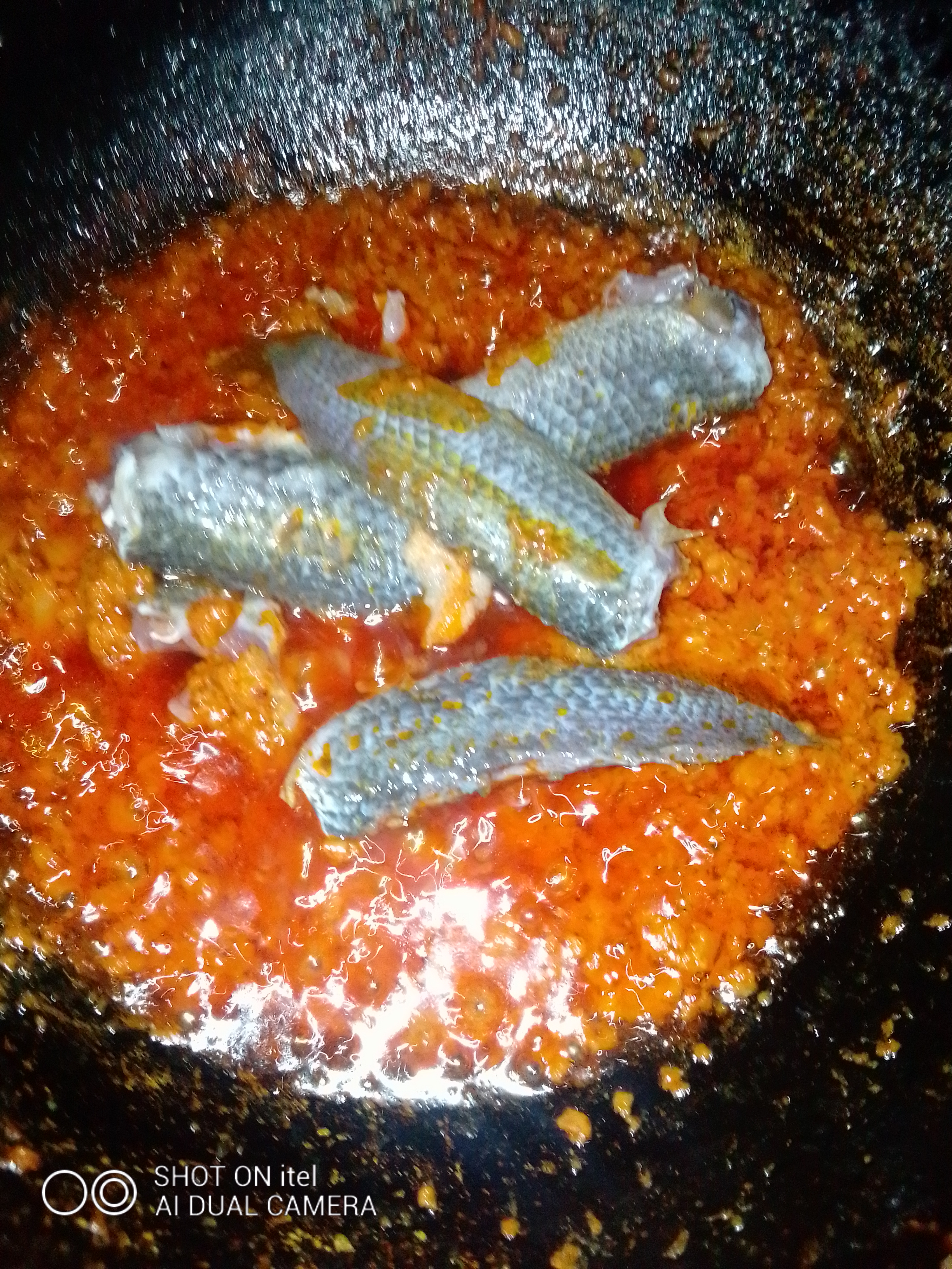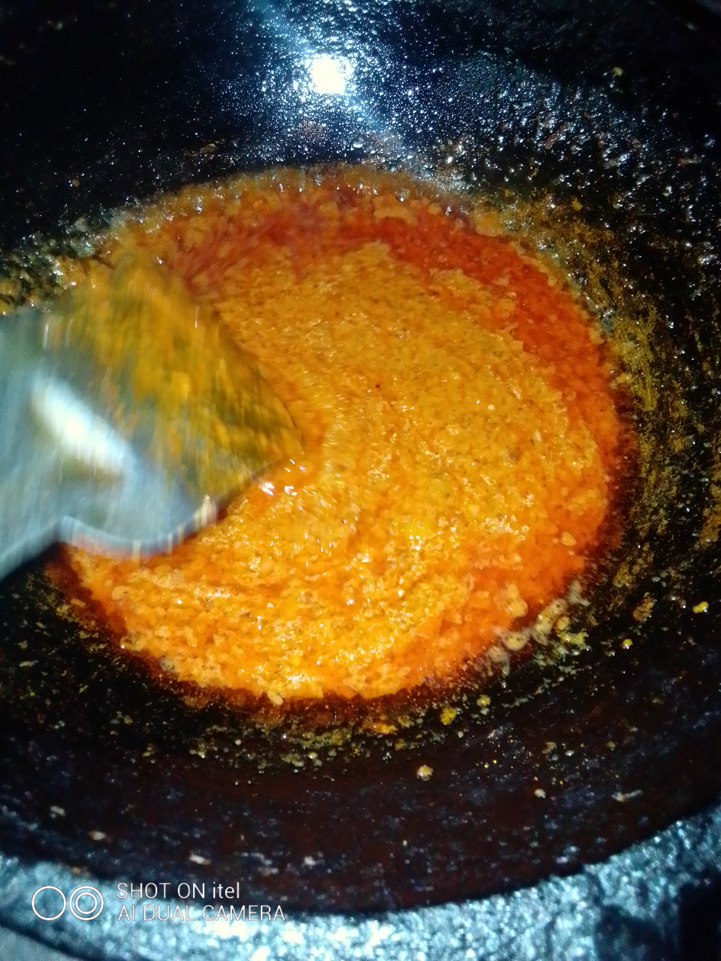 এবার চুলাতে একটা কড়াই বসিয়ে দিয়ে তাতে পরিমাণ মতো তেল দিয়ে গরম করে নিতে হবে। এরপর গরম তেলে মসলাগুলো দেওয়া পর সরিষাবাটা দিয়ে মসলা কষাতে হবে।