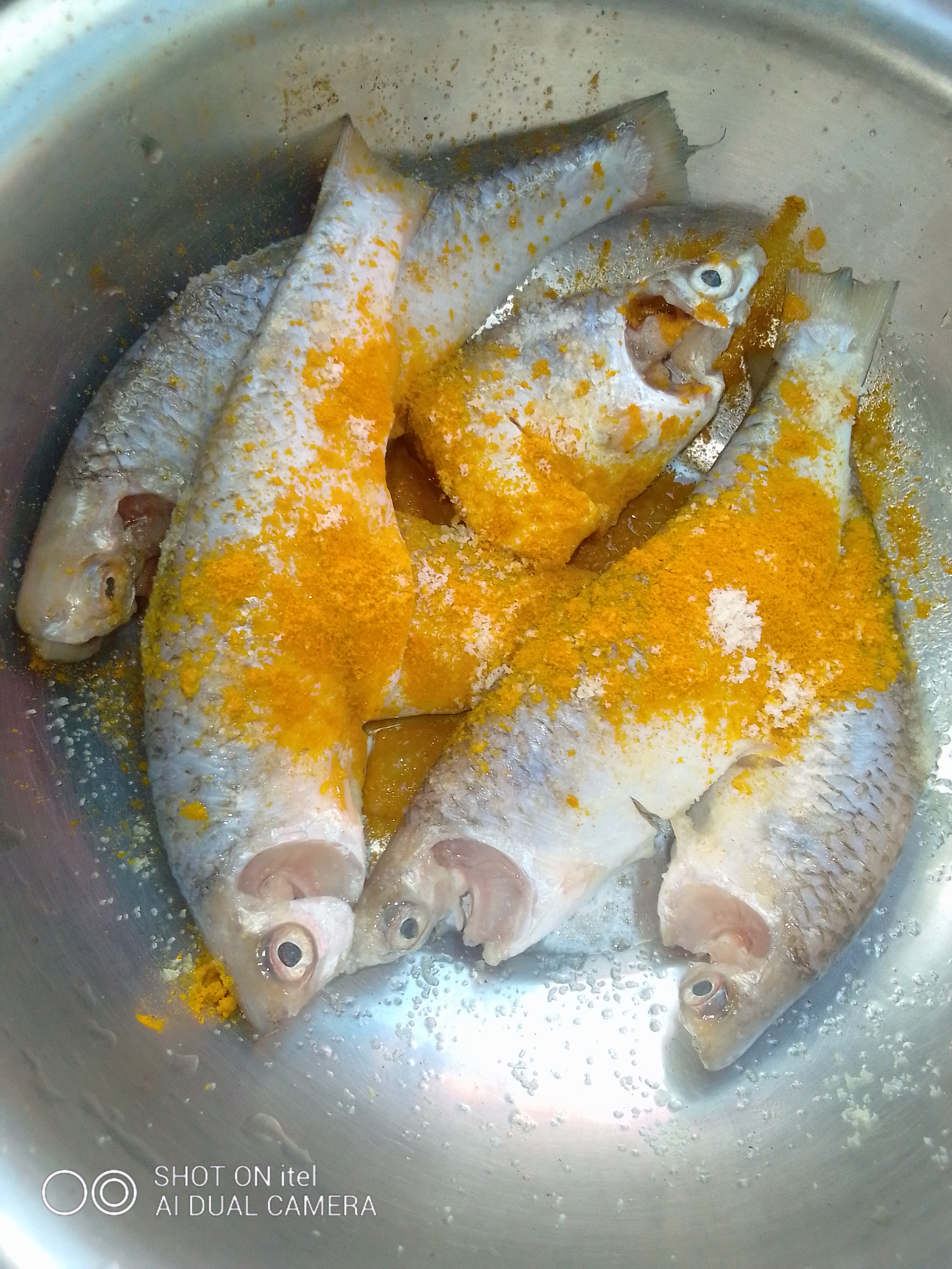 তারপর বাটা মাছ গুলো ভালো করে পানি দিয়ে ধুয়ে নিতে হবে। এরপর মাছে হলুদ গুড়া ওলবণ দিতে মাখিয়ে নিতে হবে।