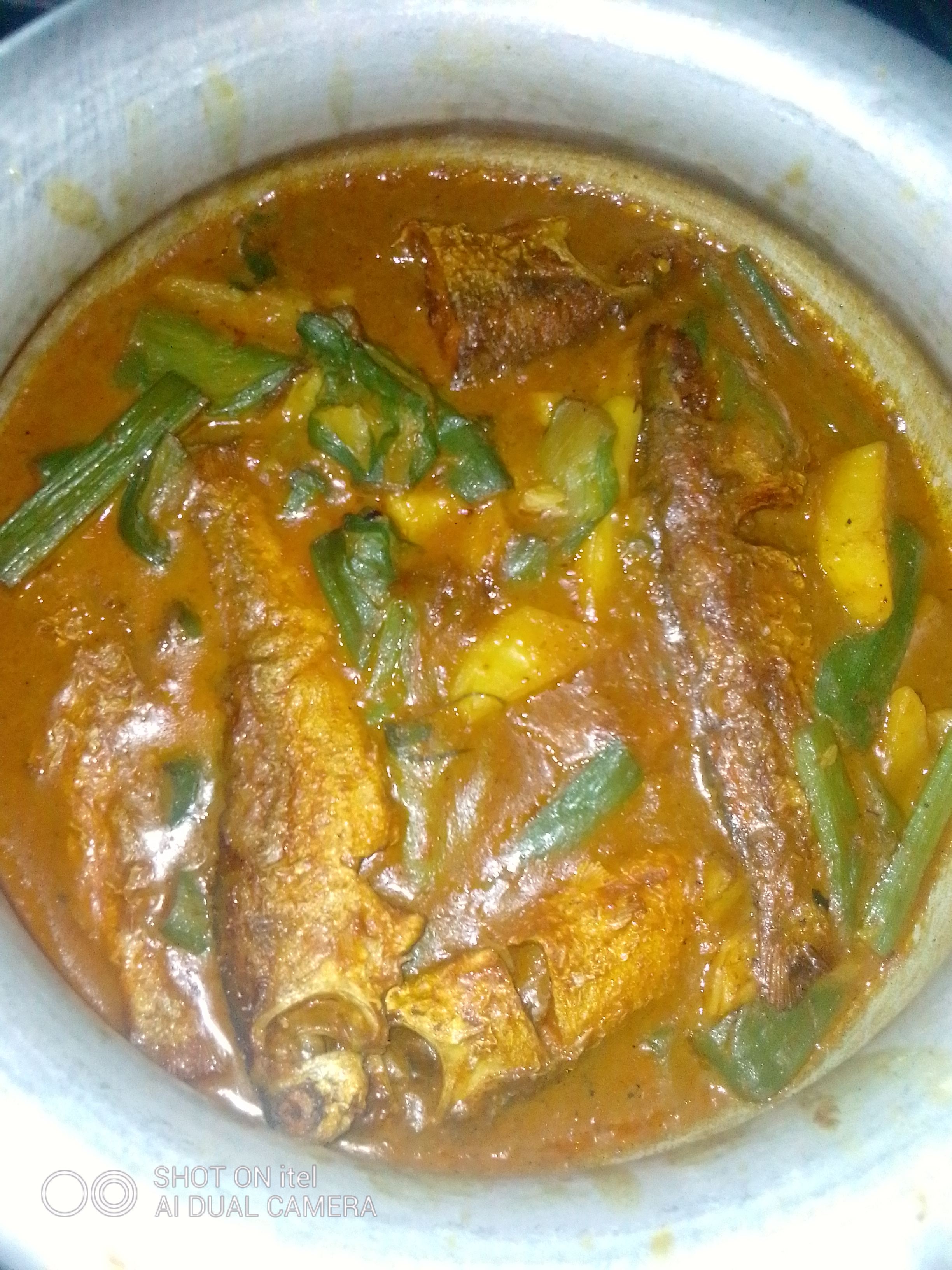 মৌলবি কচুর ডাটা আর আলু দিয়ে বড় বাটা মাছের ঝোল তৈরি রেসিপি।