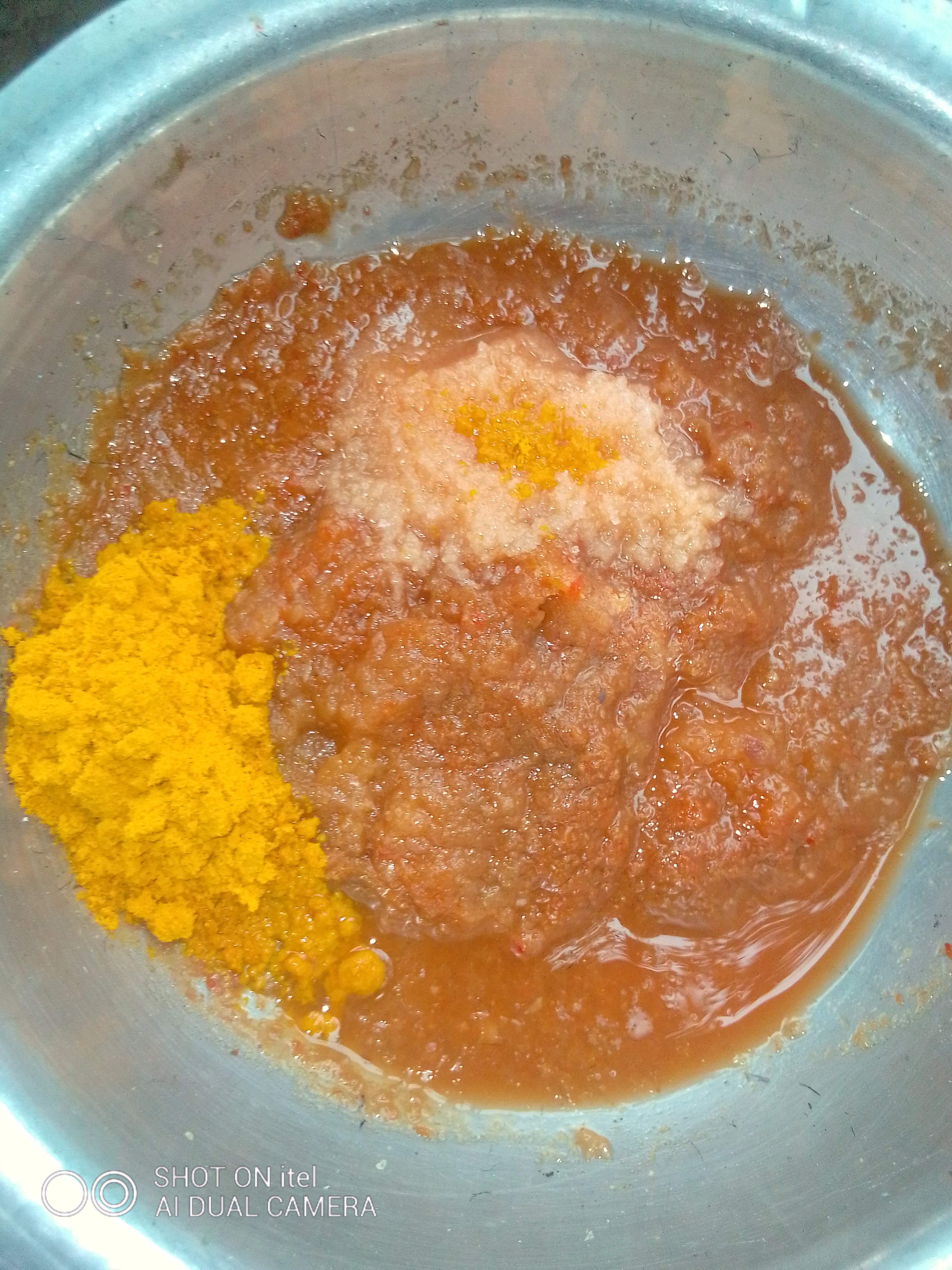 এরপর শুকনো মরিচও পিঁয়াজ রসুন কেটে নিয়ে তা বেটে নিতে হবে।বাটার মধ্যে জিরাগুঁড়া হলুদগুড়া ও লবণ দিয়ে দিতে হবে।