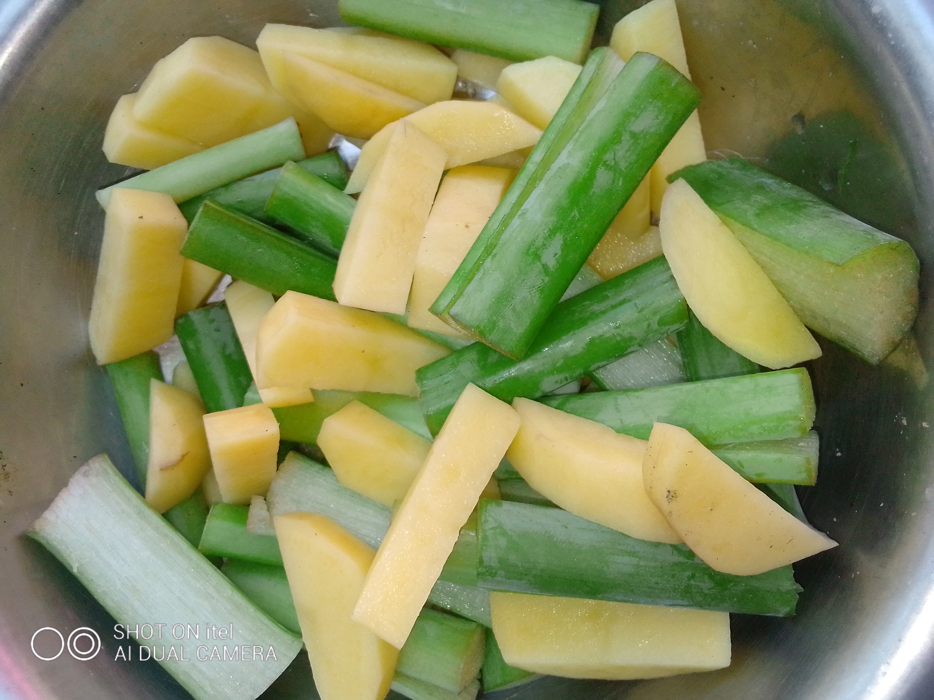 প্রথমে মৌলবি কচুর ডাটা আর আলু কেটে নিতে হবে।