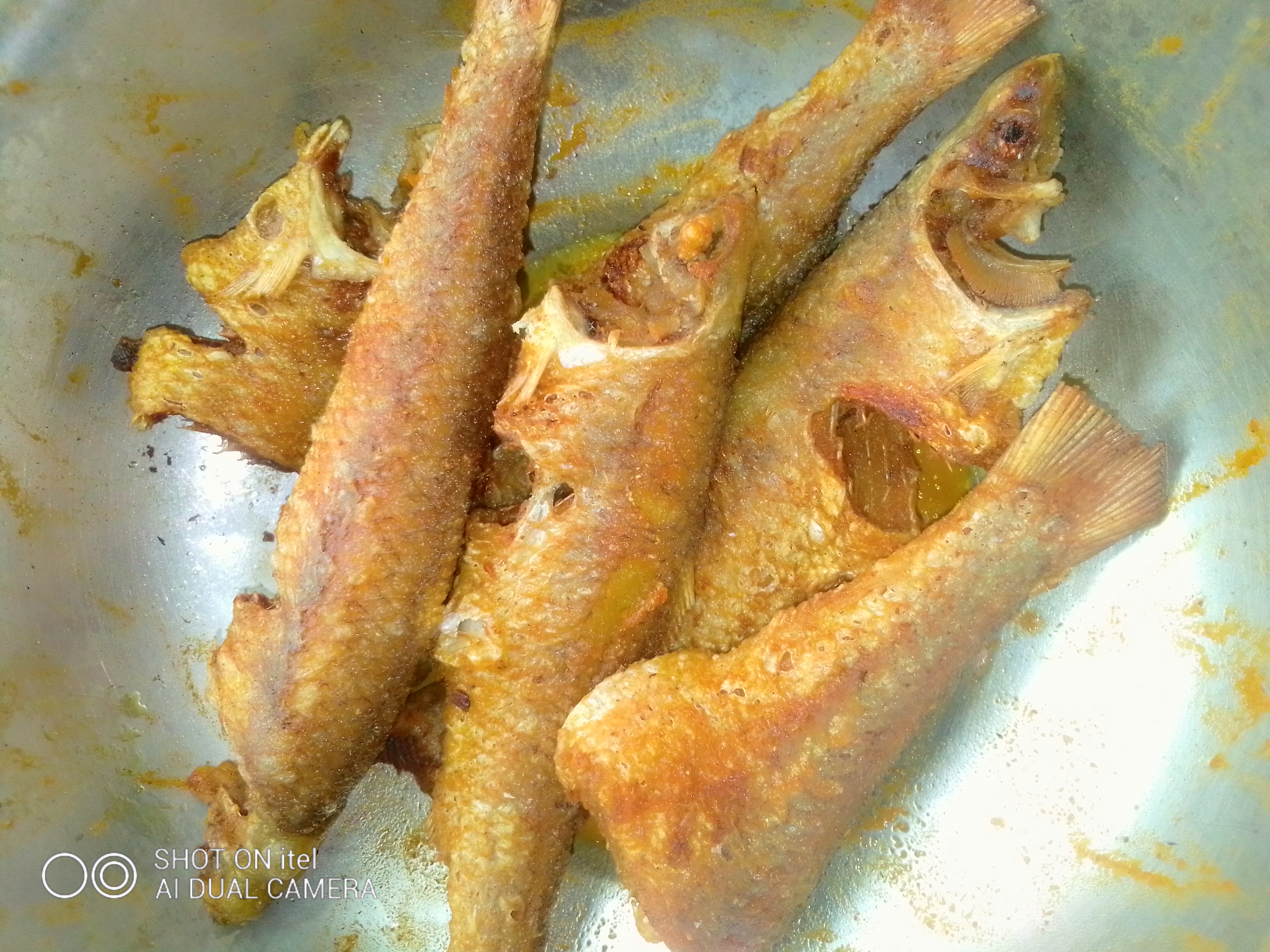 এবার চুলাতে একটা কড়াই বসিয়ে দিয়ে তাতে তেল দিয়ে গরম করে নিতে হবে। তারপর মাখিয়ে রাখা মাছগুলো গরম তেলে ছারতে হবে।